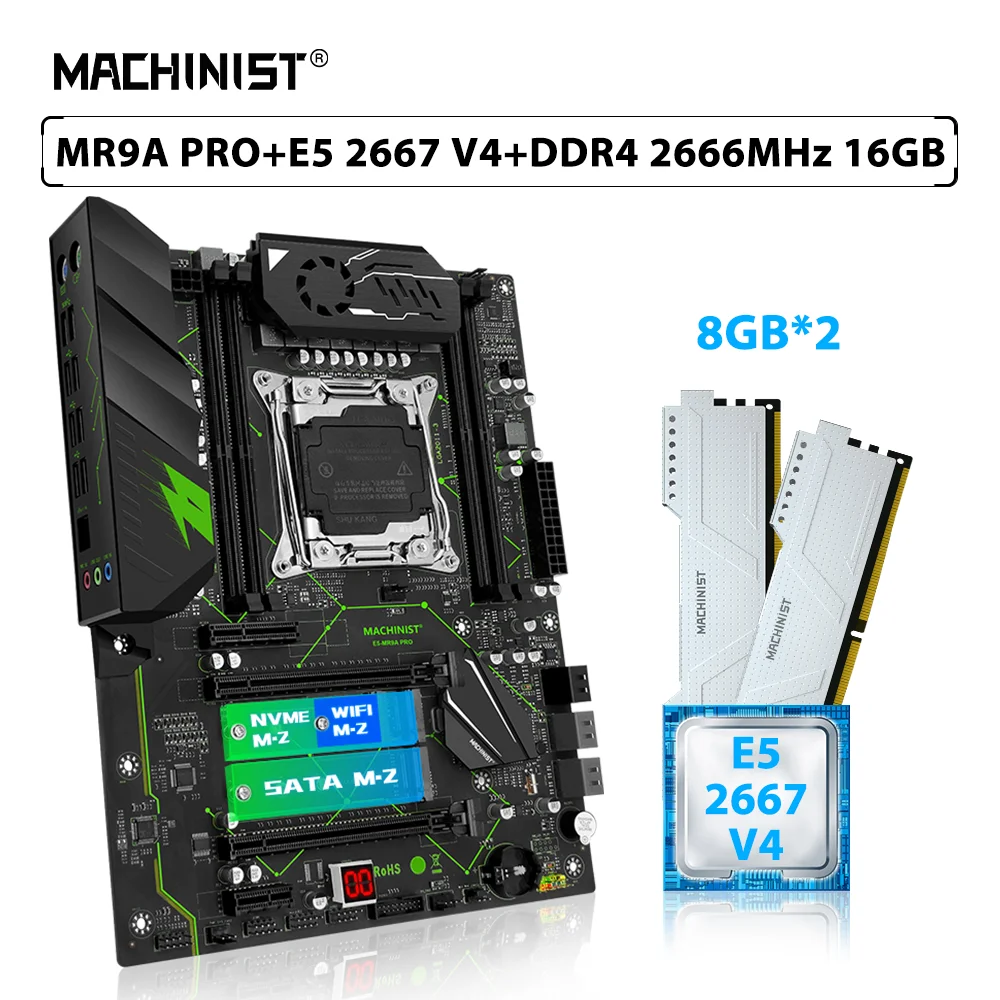 Comprar MACHINIST-Conjunto de placa base MR9A PRO X99, Kit LGA 2011-3, procesador Xeon E5 2667 V4, CPU 2 piezas x 8GB = 16GB, 2666MHz, DDR4 memoria RAM, NVME