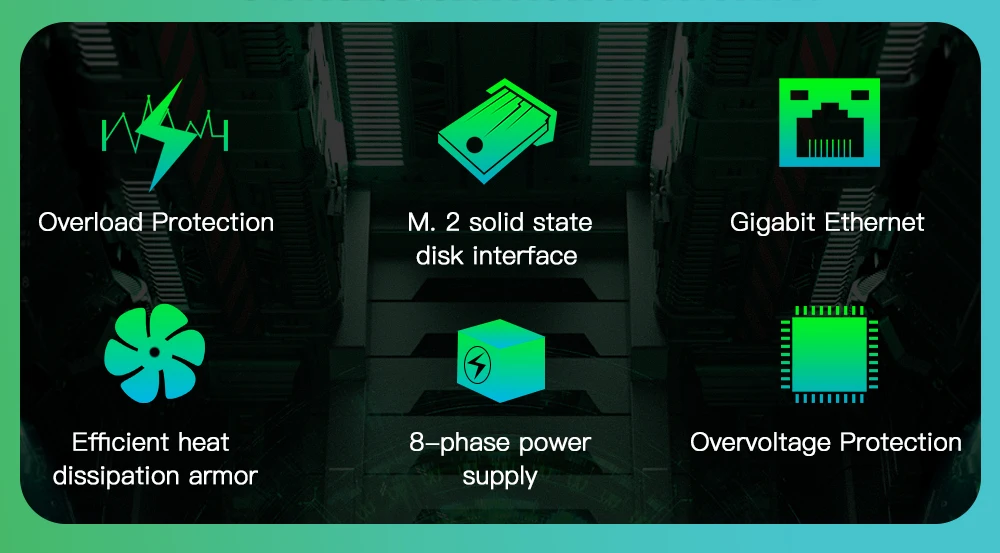 Placa posterior PCB de 8 capas, fuente de alimentación de 8 fases, VRM no necesita radiador, El overclocking no se calentará
