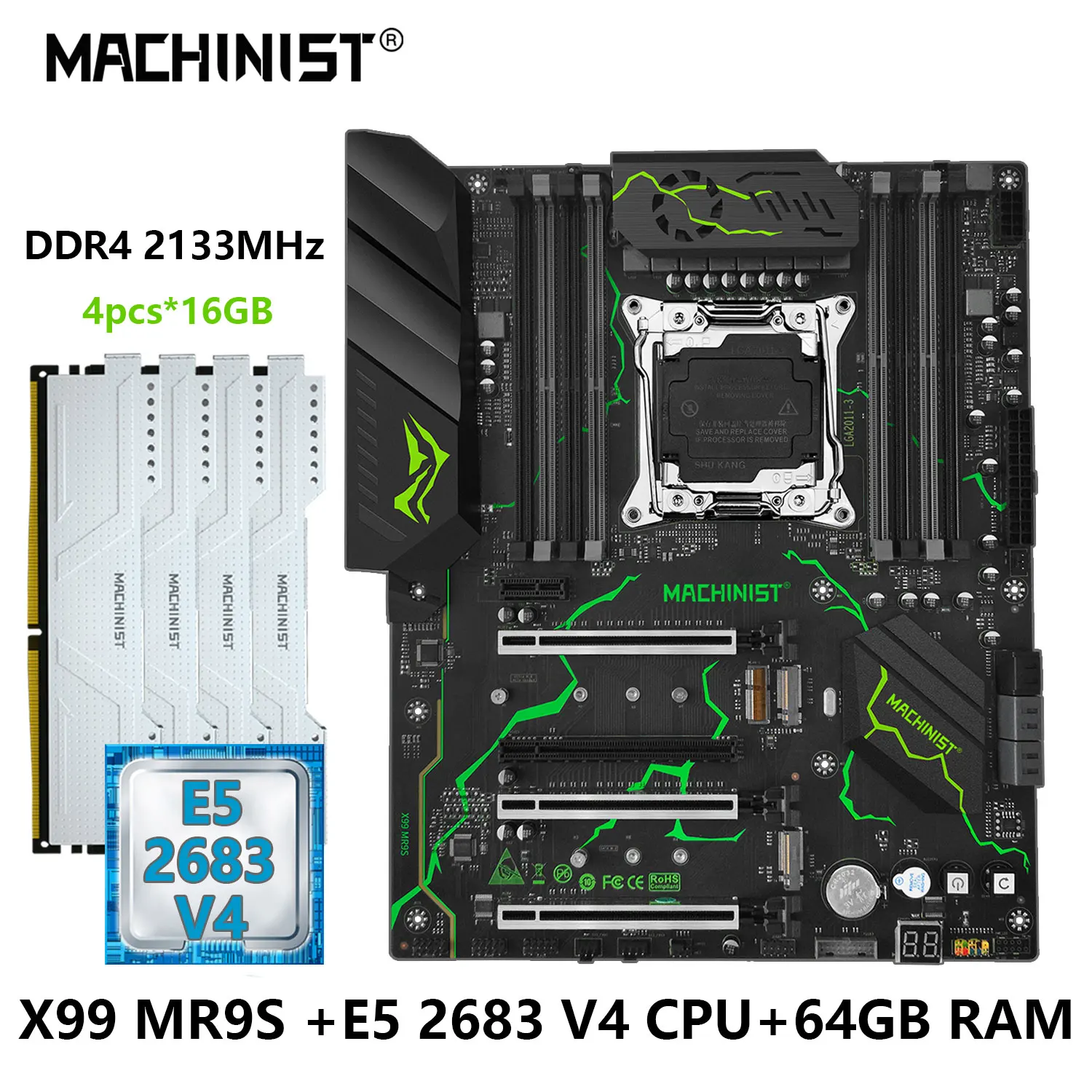 Comprar MACHINIST-Conjunto de placa base MR9S X99, LGA 2011-3 Xeon E5 2683 V4 CPU procesador ECC DDR4 4x16GB RAM memoria USB 3,0 NVME M.2 ATX