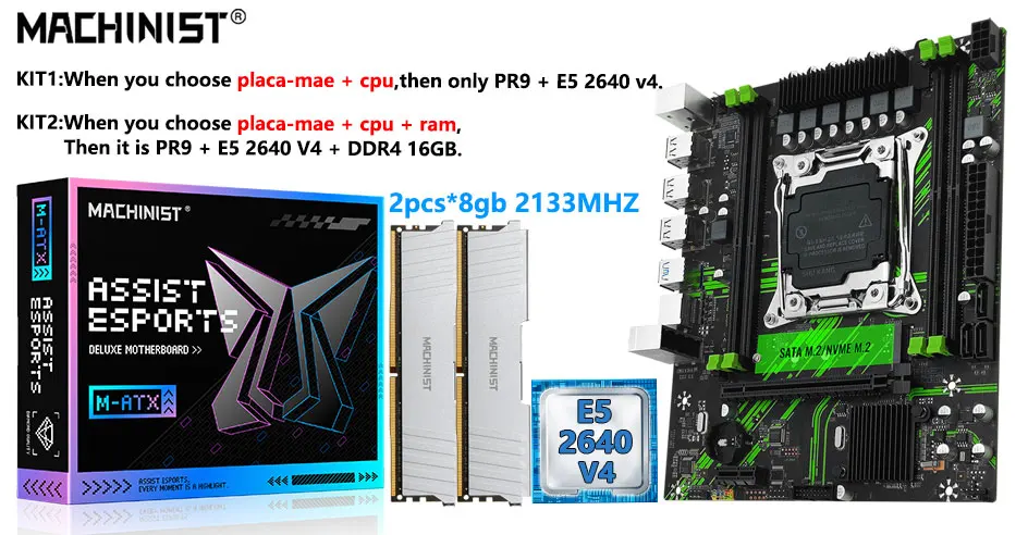 Comprar MACHINIST-Conjunto de placa base PR9 X99, LGA 2011-3, procesador Xeon E5 2640 V4, CPU + DDR4, 2x8GB de memoria RAM, USB 3,0, NVME/SATA, M.2, M-ATX