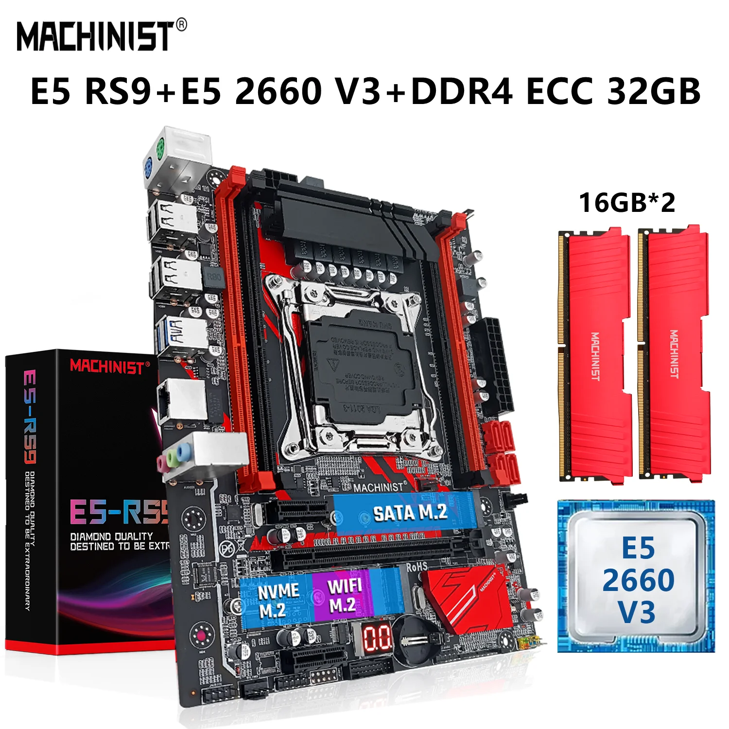 Comprar MACHINIST-Conjunto de placa base RS9 X99, Xeon E5 2660 V3 CPU LGA 2011-3, procesador 32G = 2x16G DDR4 ECC RAM Memory NVME M.2 SATA WIFI