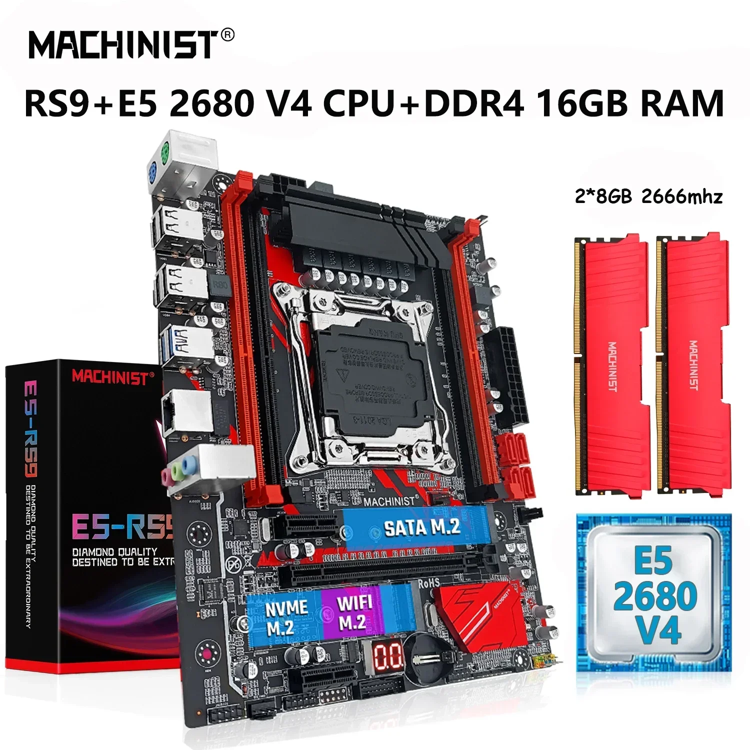 Comprar MACHINIST-Conjunto de placa base RS9 X99, Xeon E5 2680 V4 CPU, procesador Combo LGA 2011-3 16G = 2*8G DDR4 2666 RAM, Memoria NVME M.2 SATA