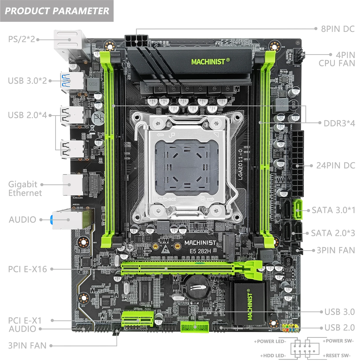 Comprar MACHINIST-Conjunto de placa base X79 LGA 2011, CPU Xeon E5 2670 V2, procesador 16G = 8G * 2 DDR3, memoria RAM ECC, compatible con cuatro canales, 282H