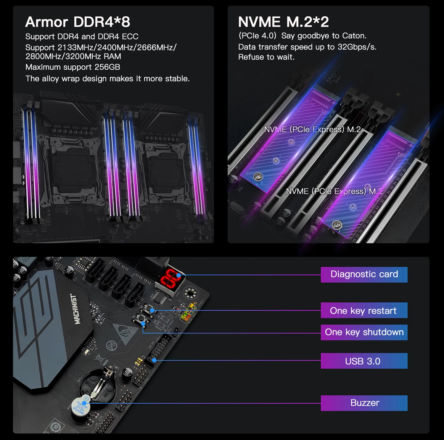 Comprar MACHINIST-Conjunto de placa base X99-D8-MAX LGA 2011-3 Xeon, procesador Dual E5 2683 V4, CPU 8 piezas x 16GB = 128GB, ECC, DDR4, memoria RAM, NVME