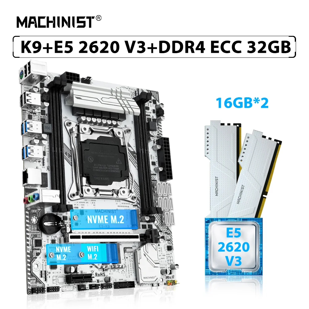 Comprar MACHINIST-Conjunto de placa base X99 K9, Kit LGA 2011-3, procesador Xeon E5 2620 V3, CPU 2 piezas x 16GB = 32GB, memoria DDR4 ECC, RAM NVME M.2, WIFI