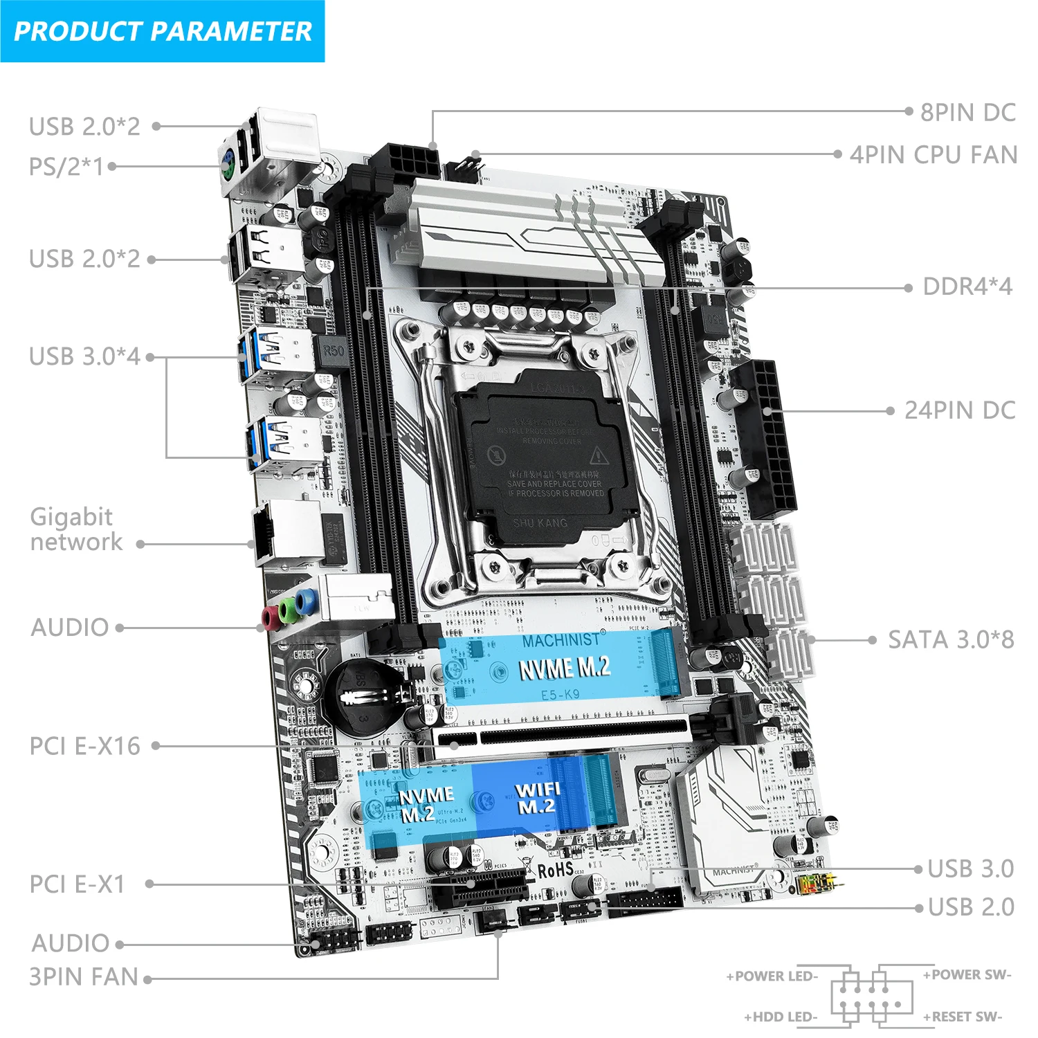 Comprar MACHINIST-Conjunto de placa base X99 K9, LGA 2011-3, procesador Xeon E5 2680 V4, CPU 2 piezas x 16GB = 32GB, ECC, DDR4, memoria RAM, NVME, M.2, SATA