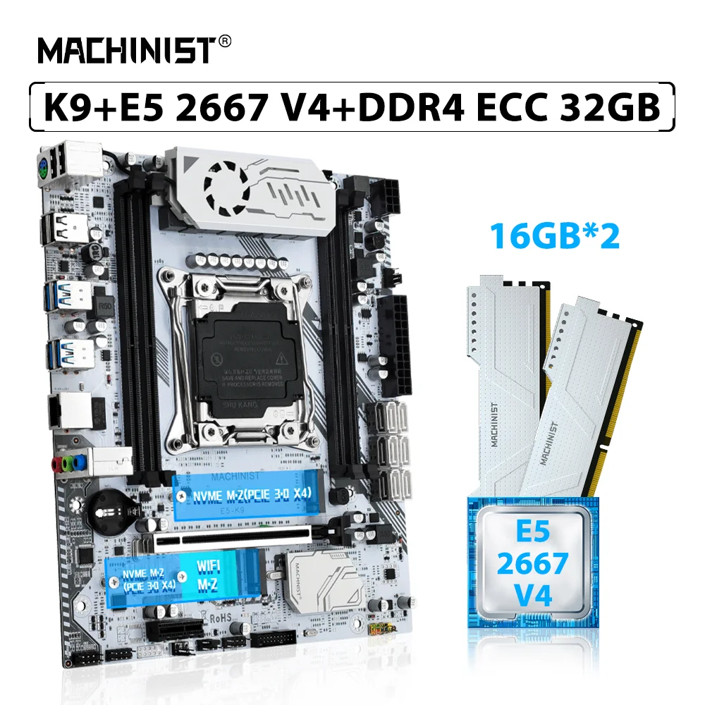 Comprar MACHINIST-Conjunto de placa base X99 K9, LGA 2011-3, procesador Xeon E5 2667 V4, CPU DDR4, 32GB = 2 piezas x 16GB, Memoria ECC, RAM SATA M.2 NVME