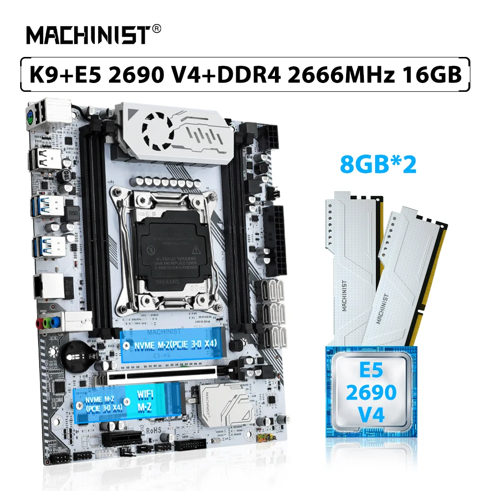 Comprar MACHINIST-Conjunto de placa base X99 K9, LGA 2011-3 Xeon Kit E5 2690 V4, procesador CPU 16GB = 2 piezas x 8GB 2666MHz, memoria DDR4, RAM NVME M.2 SSD