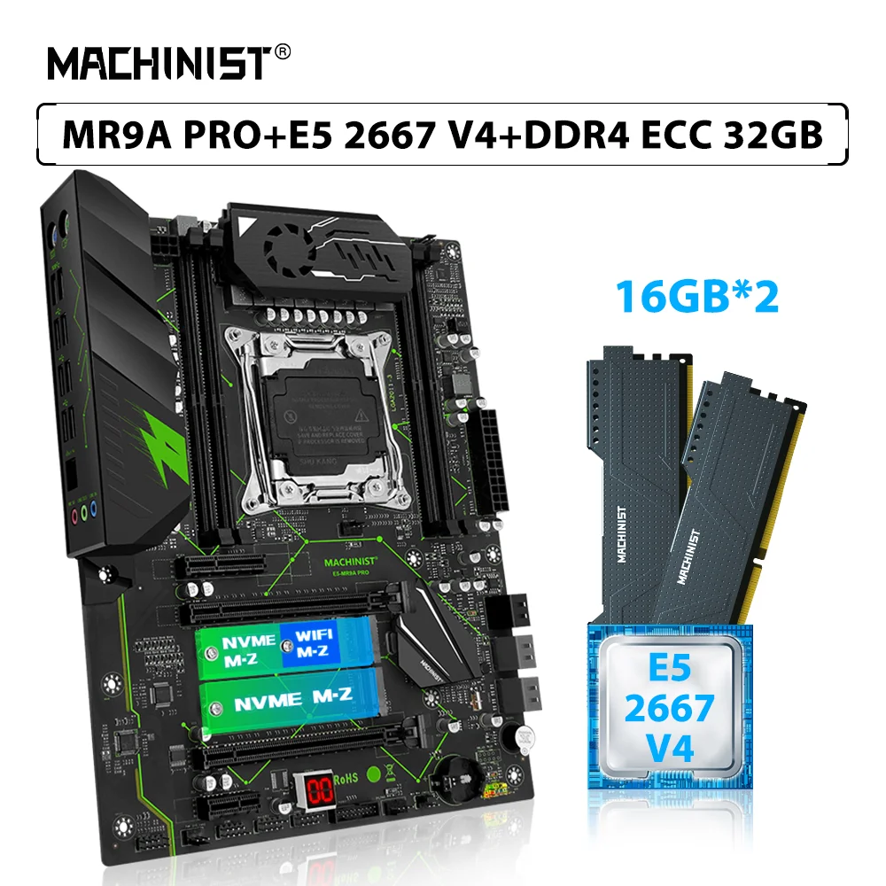 Comprar MACHINIST-Conjunto de placa base X99 LGA 2011-3, procesador Xeon E5 2667 V4, CPU de 32GB = 2 piezas x 16GB, Memoria ECC DDR4, RAM NVME M.2 MR9A PRO