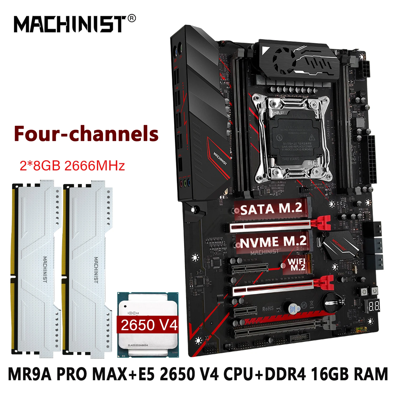 Comprar MACHINIST-Conjunto de placa base X99, LGA 2011-3 Xeon E5 2650 V4 CPU DDR4 RAM 2x8GB 2666mhz memoria USB 3,0 NVME M.2 ATX MR9A pro MAX