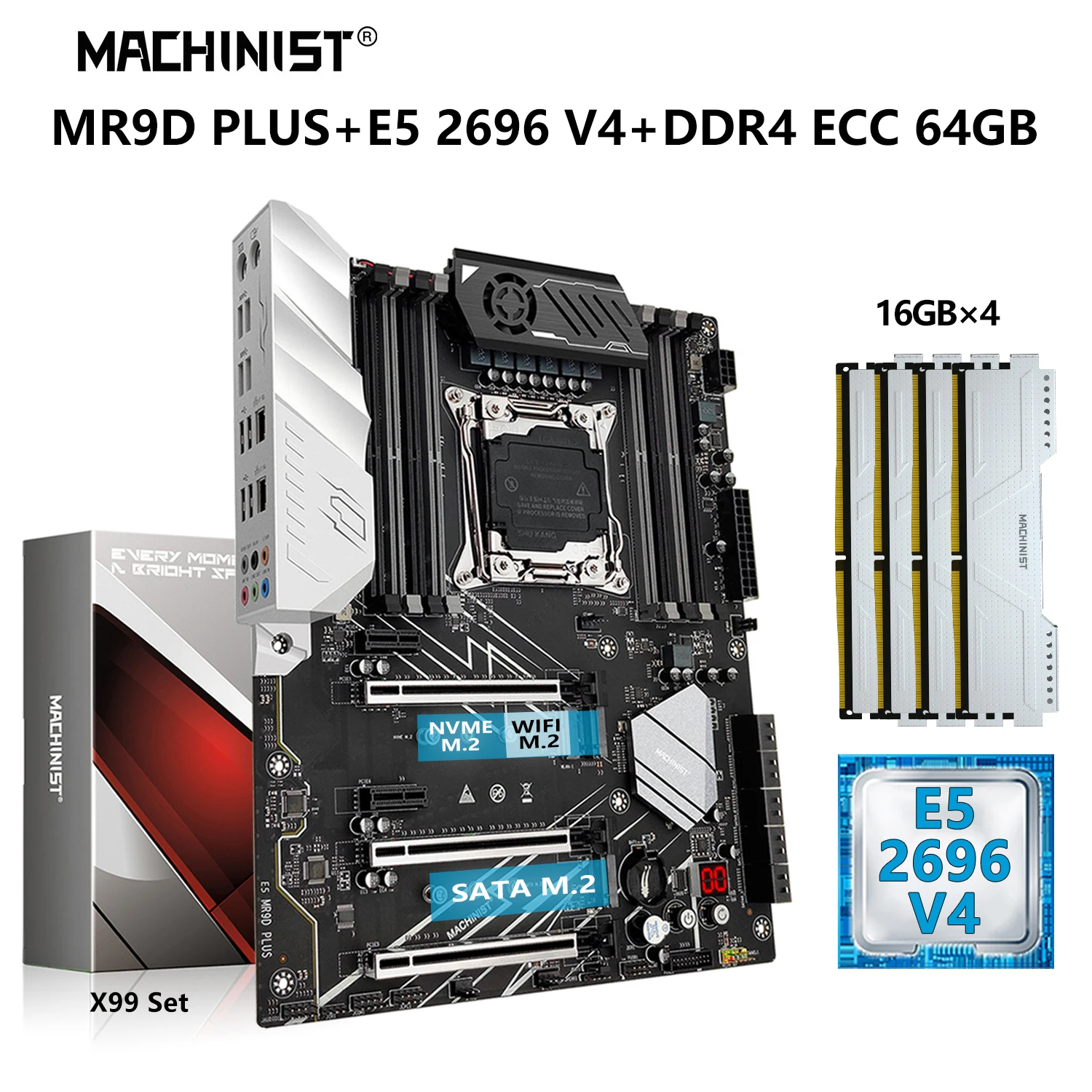 Comprar MACHINIST-Conjunto de placa base X99, LGA 2011-3 Xeon Kit E5 2696 V4 CPU procesador 64G = 4x16G DDR4 ECC memoria RAM NVME M.2 WIFI MR9D PLUS