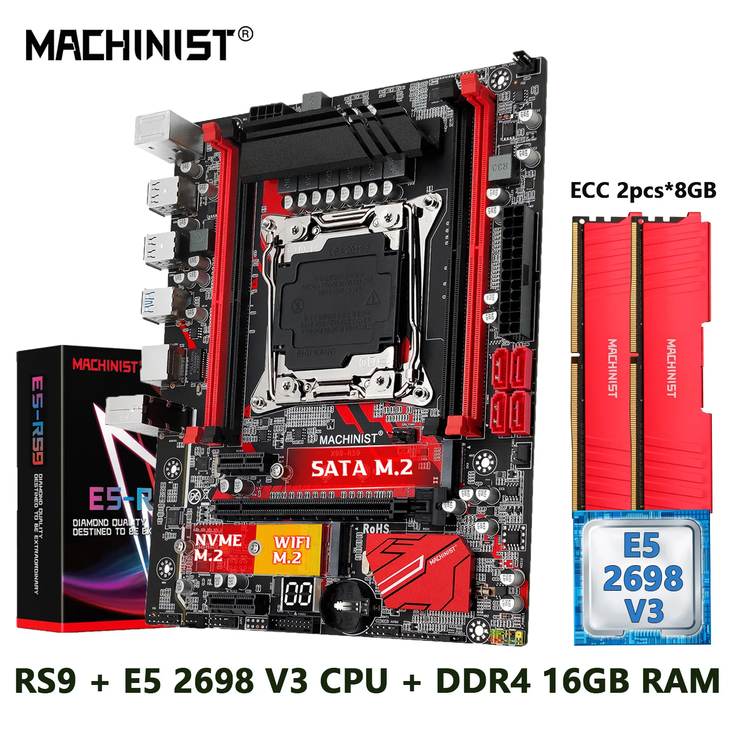 Comprar MACHINIST-Conjunto de placa base X99 LGA 2011, Kit de 3 CPU Xeon E5 2698 V3, procesador DDR4, memoria RAM de 16GB, M-ATX SSD NVME SATA M.2 RS9