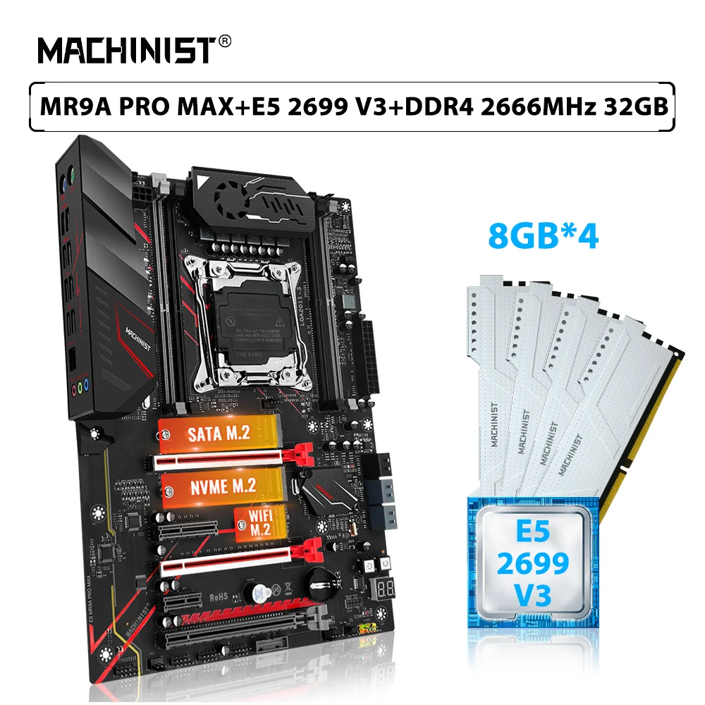 Comprar MACHINIST-Conjunto de placa base X99 MR9A PRO MAX, LGA 2011-3 Xeon Kit E5 2699 V3, procesador CPU 4 piezas x 8GB = 32GB, 2666MHz, memoria RAM DDR4