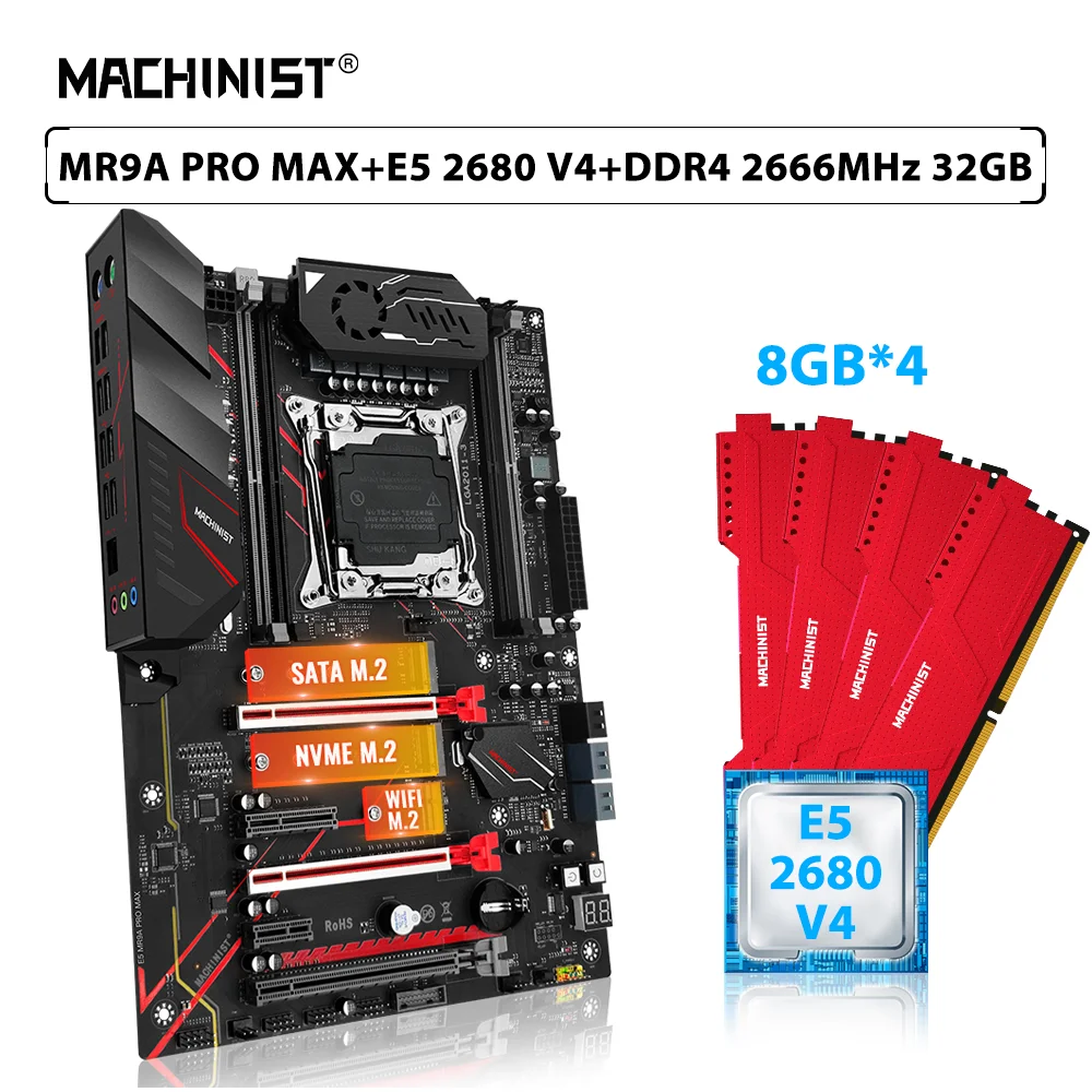 Comprar MACHINIST-Conjunto de placa base X99 MR9A PRO MAX, LGA 2011-3, Combo Xeon Kit E5 2680 V4, procesador CPU 4 piezas x 8GB = 32GB, 2666MHz, memoria DDR4