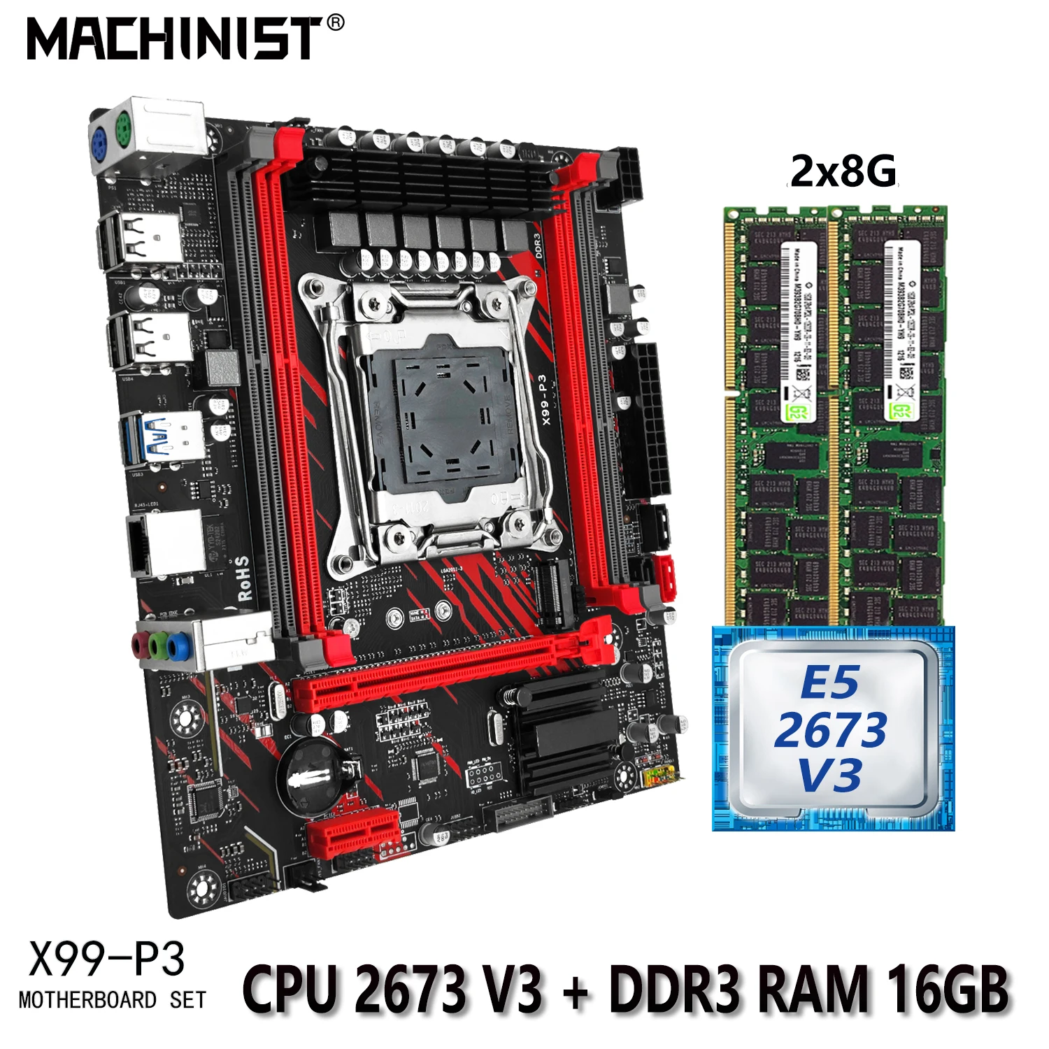 Comprar MACHINIST-Conjunto de placa base X99-P3 LGA 2011-3, Kit Xeon E5 2673 V3, CPU 16G(2x8), DDR3, ECC, memoria RAM, compatible con SSD, Sata, M.2, M-ATX