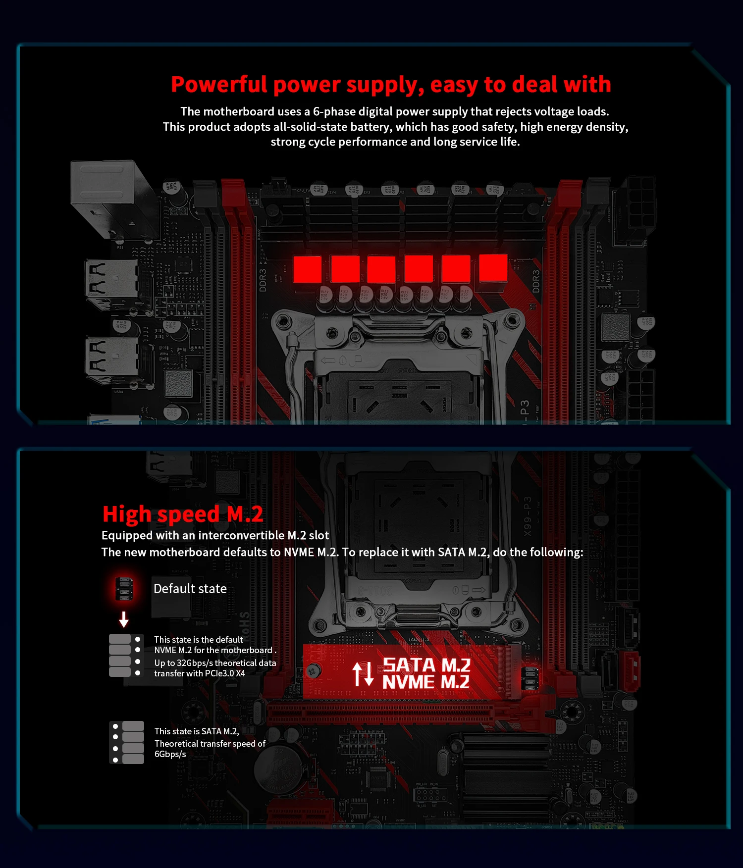 CPU compatible: puede admitir memoria DDR3 CPU de 2696 Pines, 2649 V3, 2669 V3, 2666 V3, 2673 V3, 2676 V3, 2678 V3, 2696 V3, V3