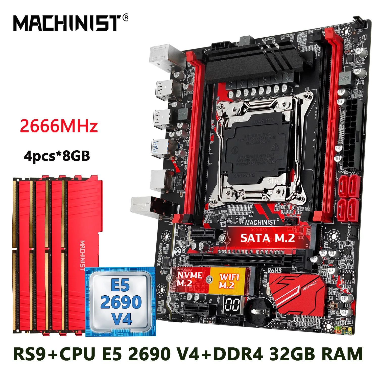 Comprar MACHINIST-Conjunto de placa base X99, procesador LGA 2011-3 Xeon CPU E5 2690 V4 con DDR4 RAM 4x8GB 2666MHz memoria USB 3,0 M-ATX RS9