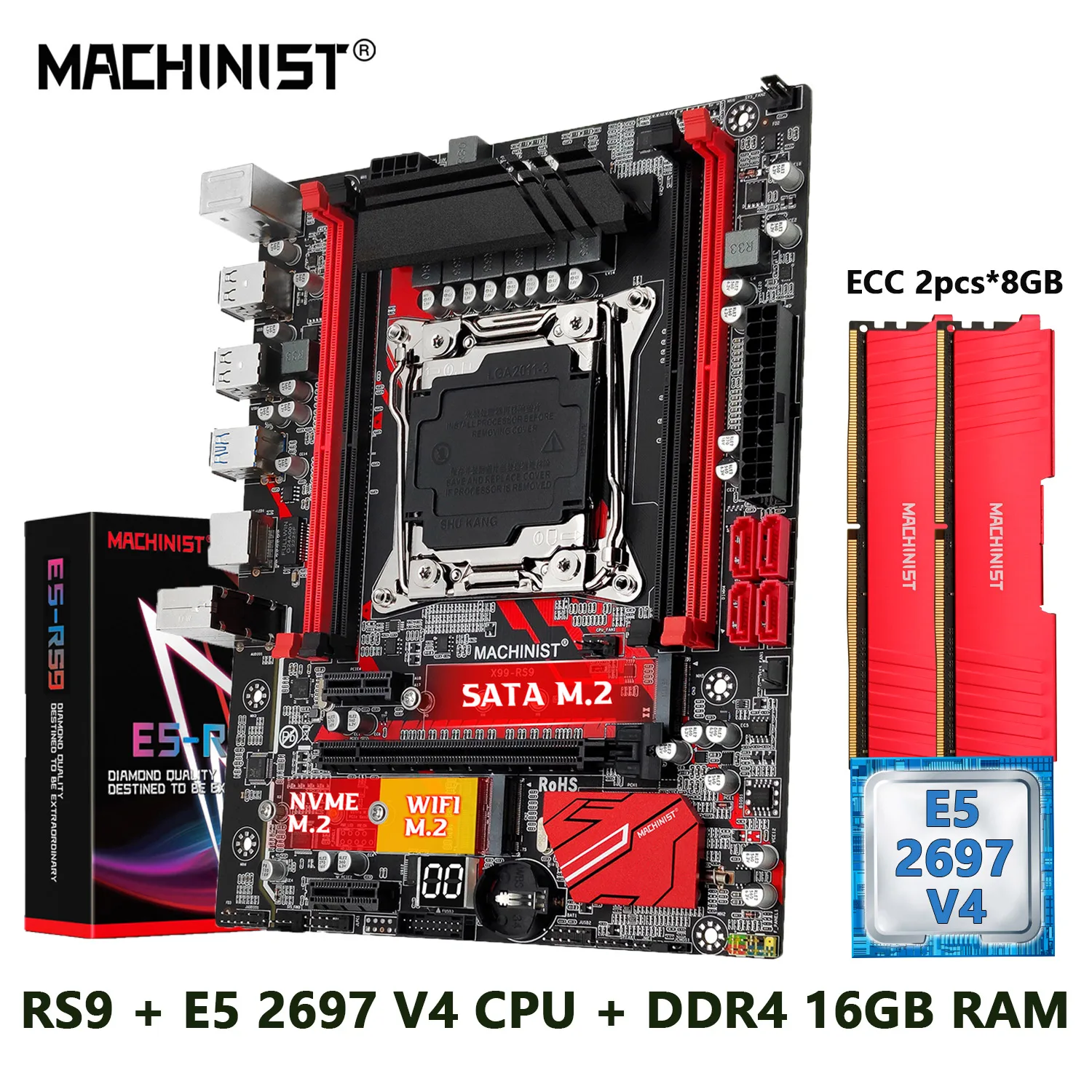 Comprar MACHINIST-Conjunto de placa base X99 RS9 LGA 2011-3, procesador de CPU Xeon E5 2697 V4, ECC, DDR4, memoria RAM de 16GB, M-ATX, M.2, NVME, SATA, SSD