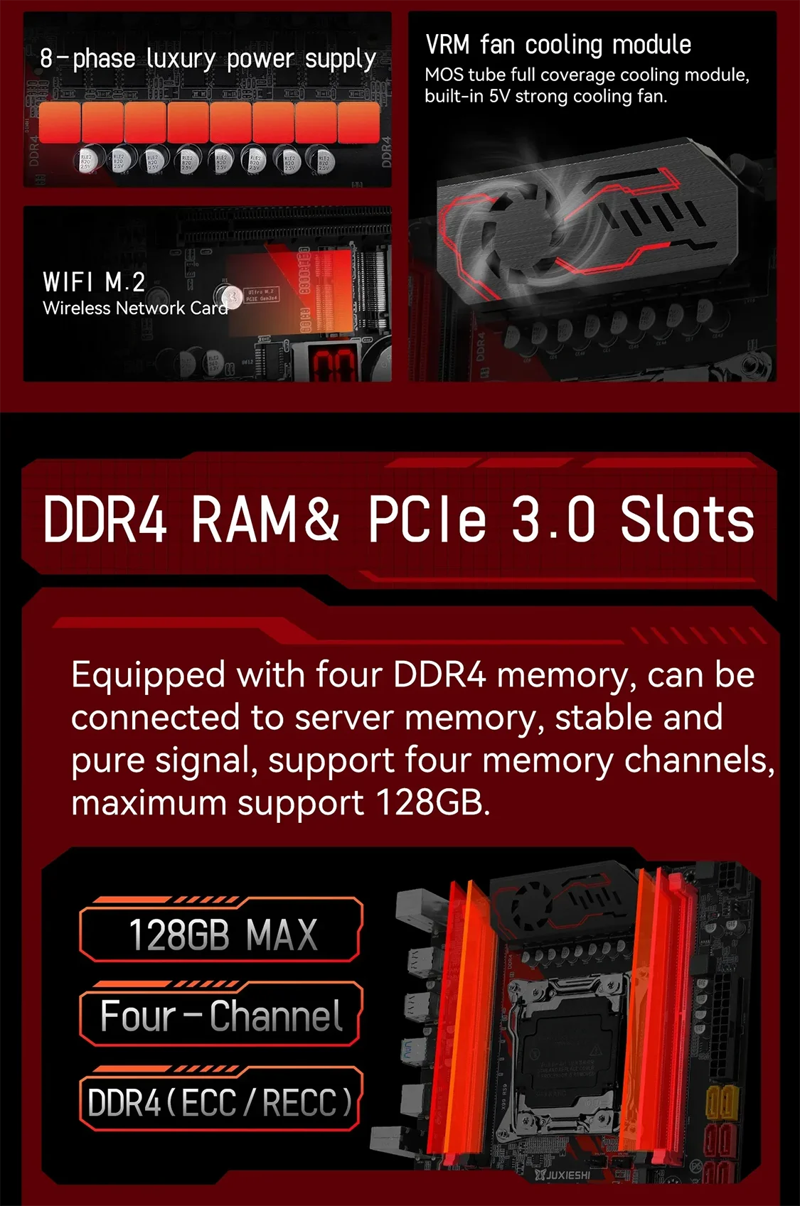 Tipo de memoria compatible: No ECC/REG ECC/ECC (utilice Samsung, Kingston, SanDisk, Micron, Hynix y otras marcas internacionales. Tipos de memoria compatibles: admite memoria de escritorio/Memoria de servidor. La RAM del servidor no puede funcionar con la RAM del escritorio, tiene un problema de compatibilidad).
