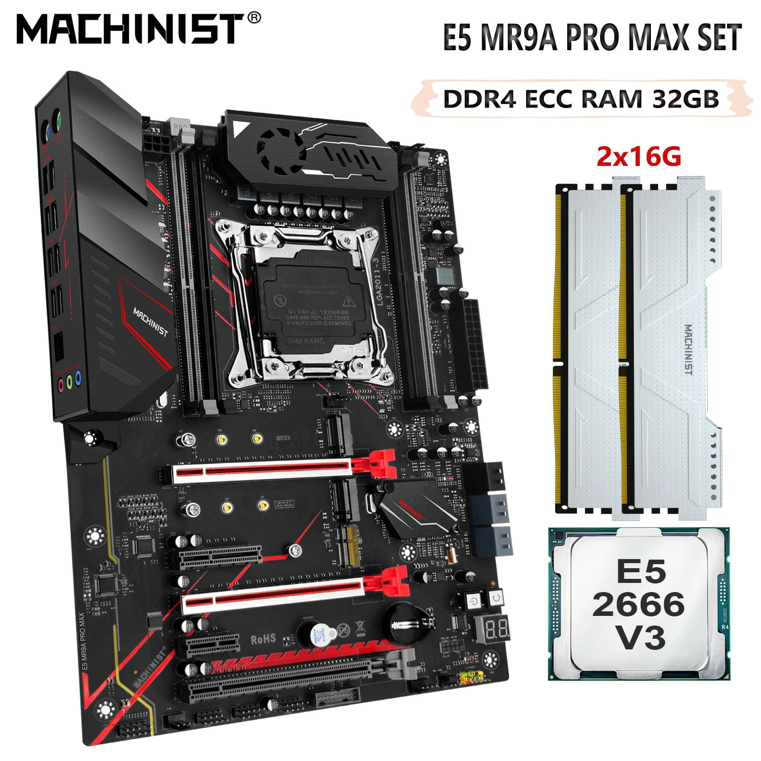 Comprar MACHINIST-Conjunto de placa base X99, Xeon E5 2666 V3 CPU LGA 2011-3 32G(2x16) DDR4 ECC RAM Memory Nvme M.2 SATA 3,0 MR9A PRO MAX