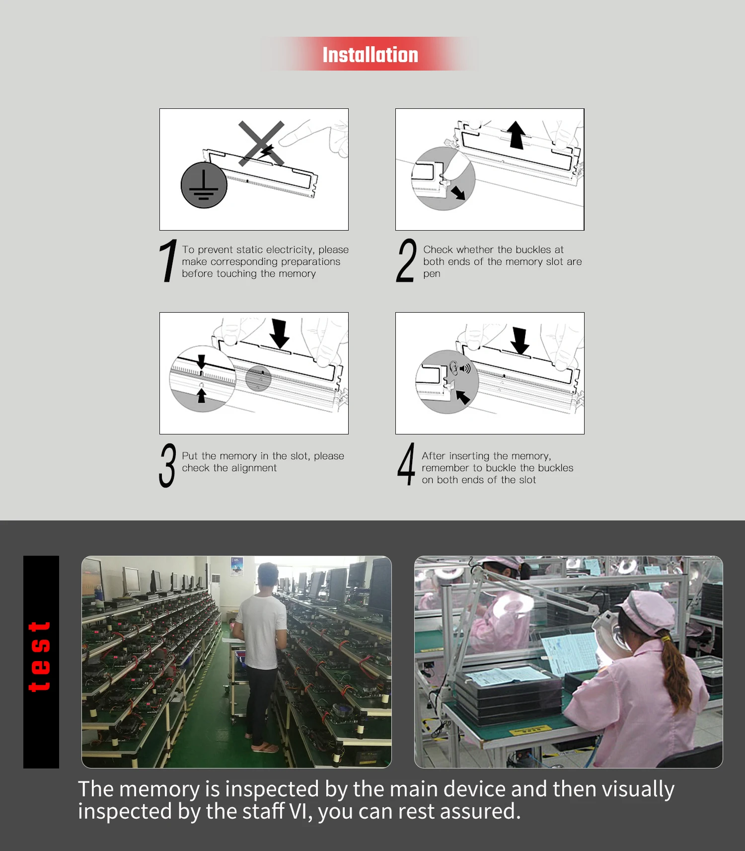 **** Antes del envío, instalamos la memoria en la placa base para realizar pruebas y garantizar que cada memoria esté funcionando correctamente.