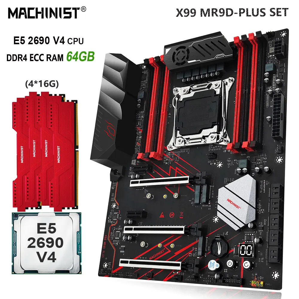 Comprar MACHINIST-Kit de placa base X99 LGA 2011, conjunto de 3 Inter Xeon E5 2690 V4 CPU 64GB(4x16G) DDR4 ECC RAM Memory Nvme M.2 ATX MR9D-PLUS