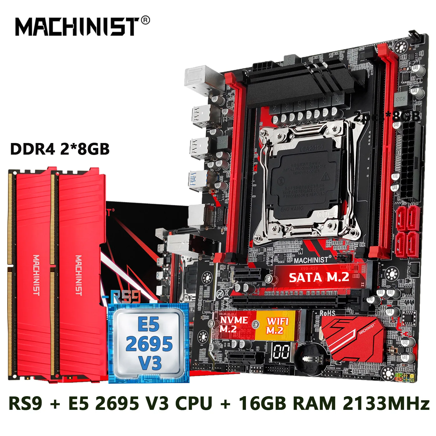 Comprar MACHINIST-Kit de placa base X99 LGA 2011, procesador de CPU Xeon E5 2695 V3, DDR4 RAM, 2x8GB de memoria SSD, NVME, M.2, usb3.0, M-ATX, RS9
