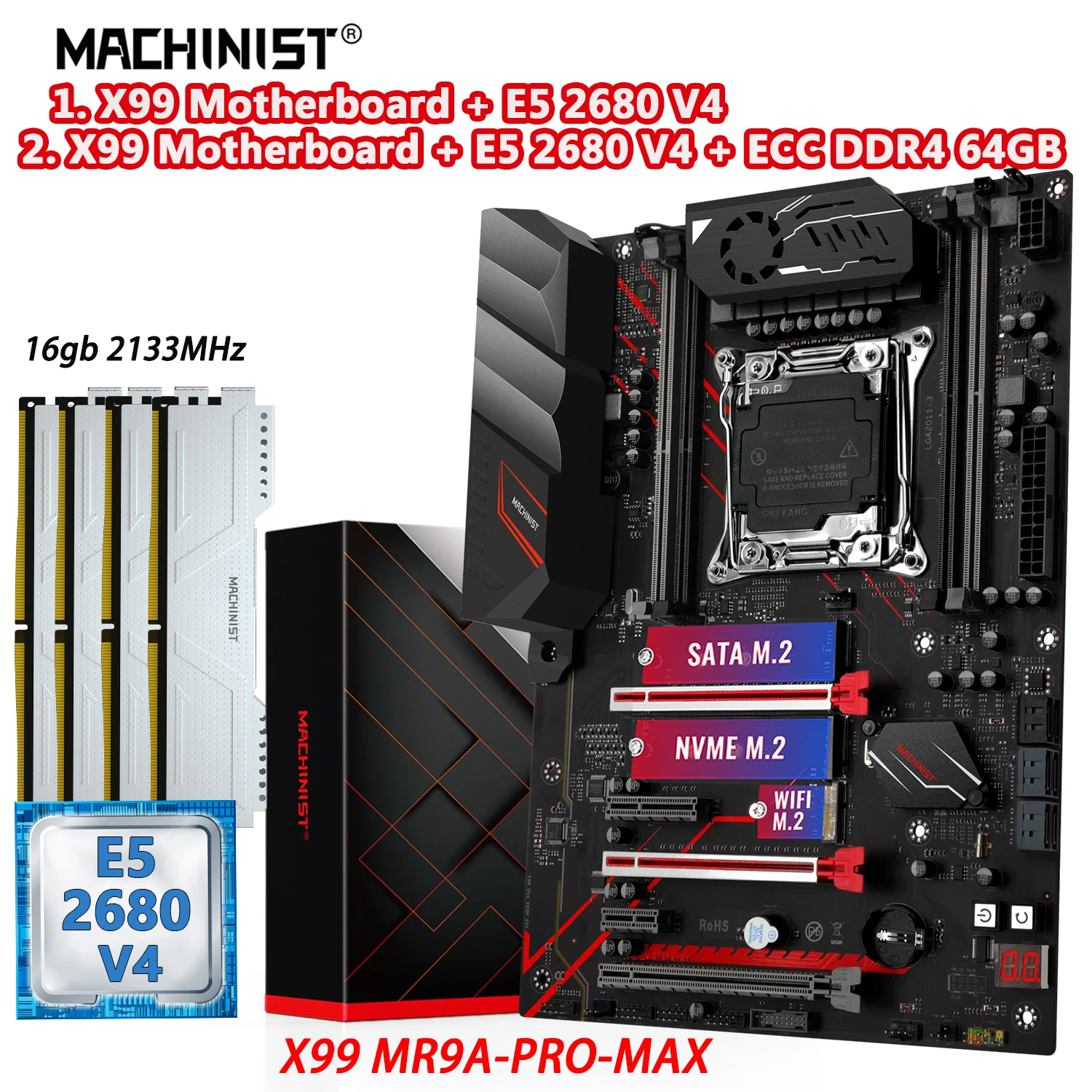 Comprar MACHINIST MR9A PRO MAX X99 Kit de placa base Xeon E5 2650 V4 procesador de CPU LGA 2011-3 4*16GB DDR4 RAM 2133MHz memoria NVME M.2