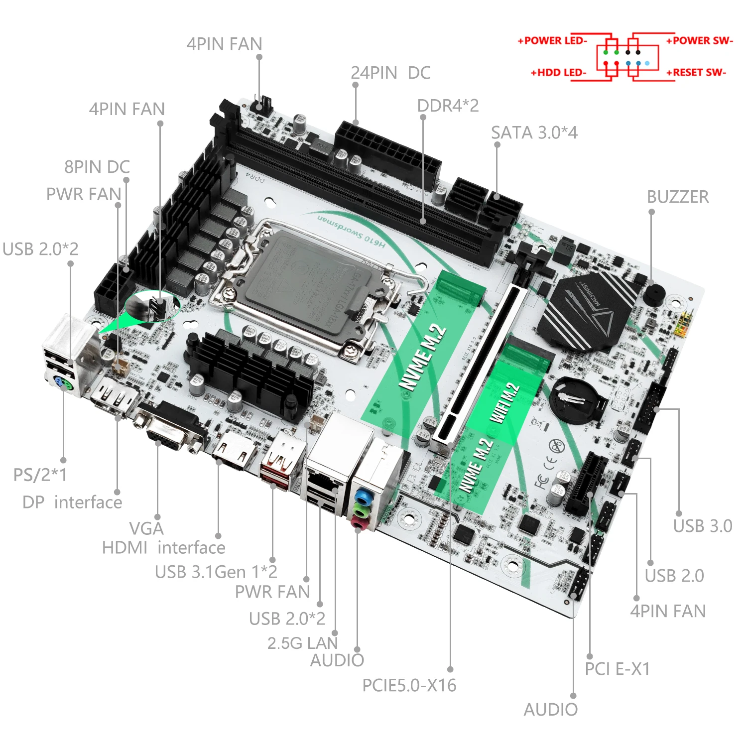 Comprar MACHINIST-placa base h610spadsman compatible con DDR4 RAM Nvme M.2 Intel Core 12 13 Gen CPU LGA 1700 12100F 12400F 12490F 12600F