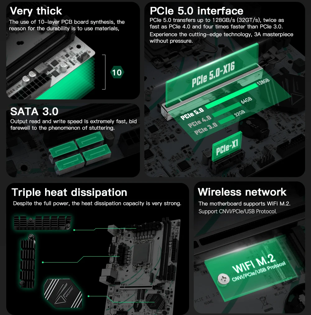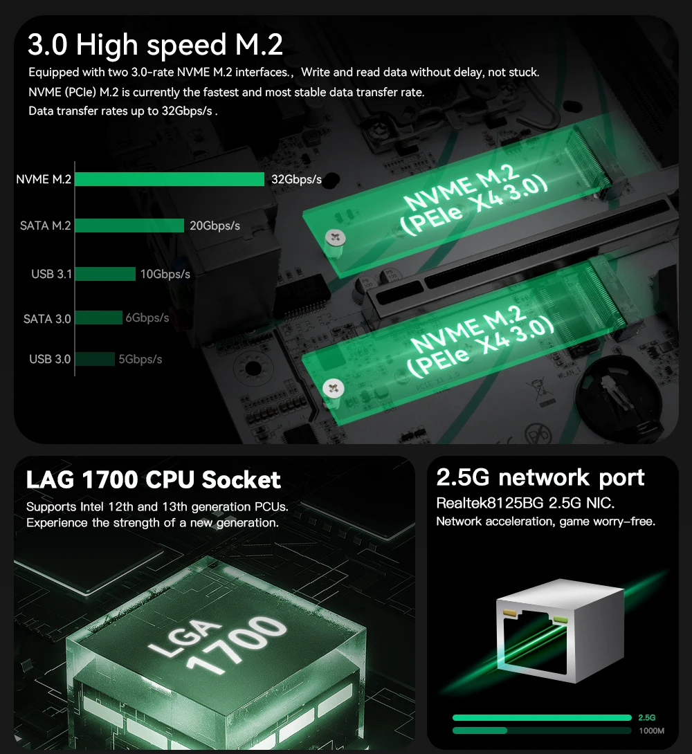 Interfaz de extensión: 2 * NVME M.2 2280 ;1M.2 WIFI (compatible con CNVI)