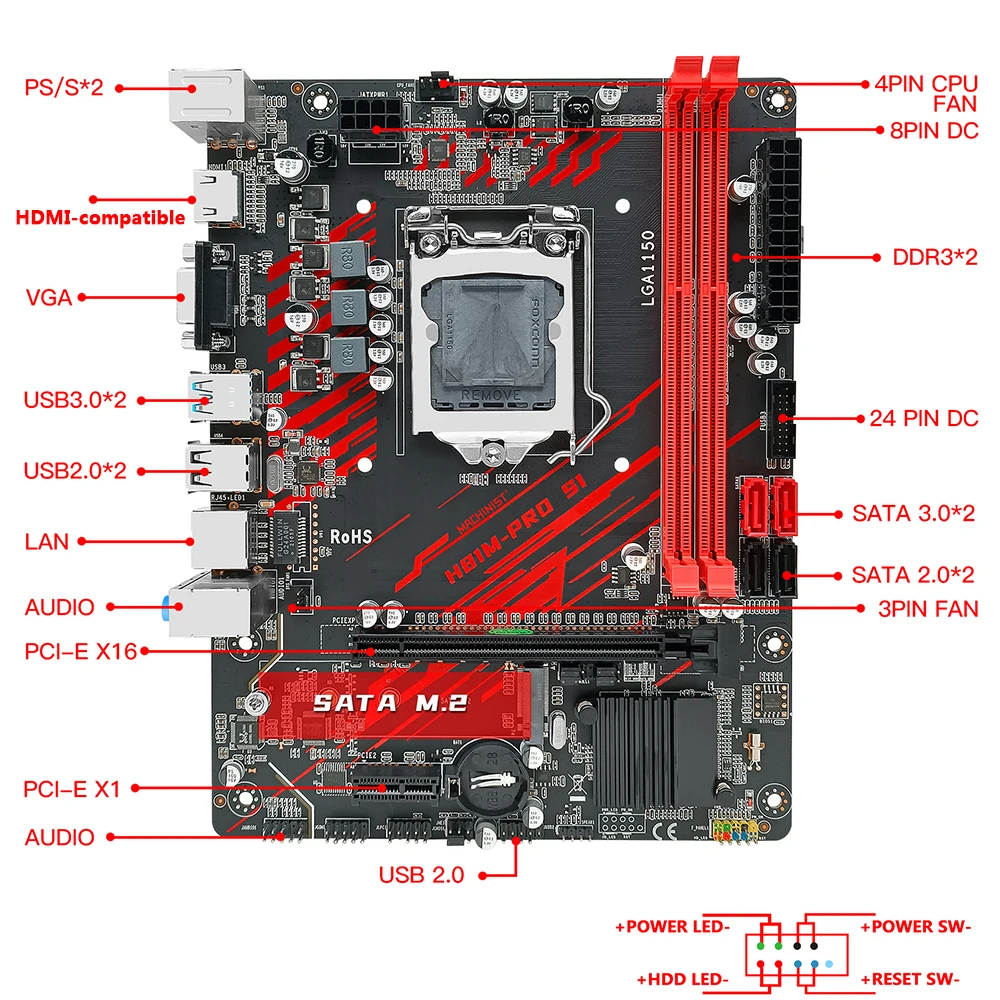 Comprar MACHINIST-placa base H81 LGA 1150, compatible con Xeon E3 V3 v4 CPU Core i3 i5 i7 procesador DDR3 RAM HDMI SATA M.2 3,0 H81M-PRO S1