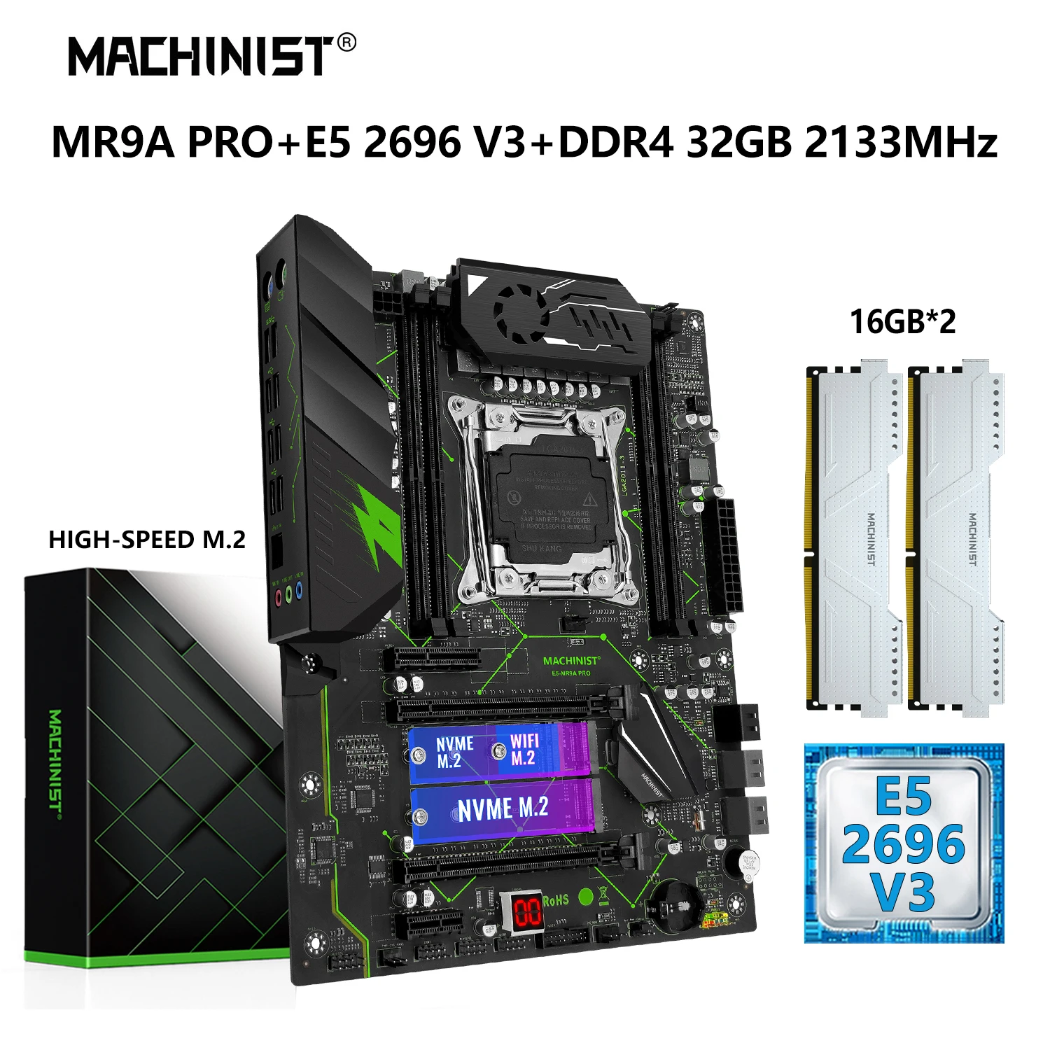 Comprar MACHINIST-placa base X99, Combo LGA 2011-3 Xeon E5 2696 V3, Kit de CPU, procesador de 32GB DDR4, memoria RAM NVME M.2, WIFI, USB 3,0, MR9A PRO