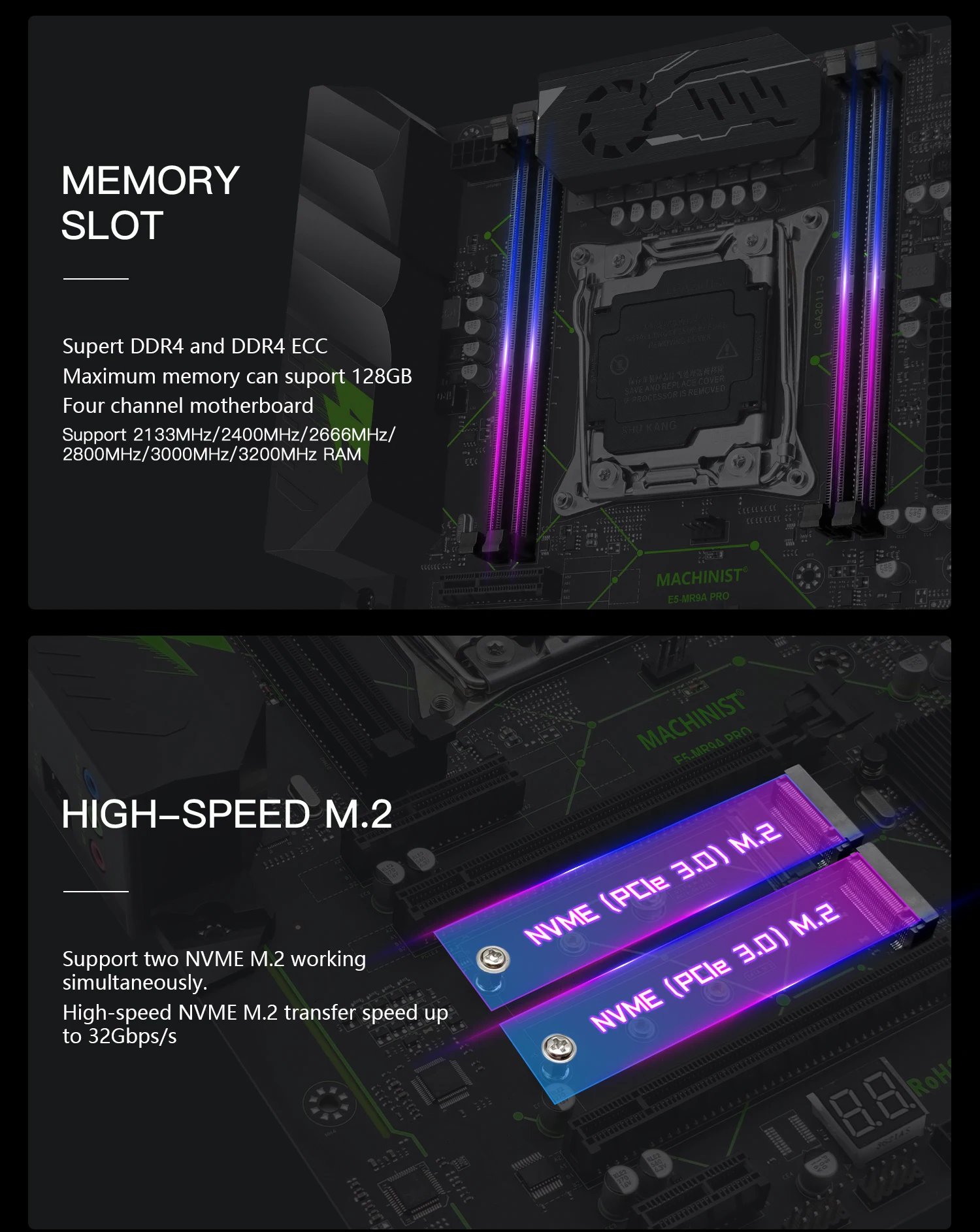 Tipos de memoria compatibles: los tipos de memoria admiten memoria DDR4 de escritorio y servidor. (Por favor, use Samsung, Kingston, SanDisk, Micron, Hynix y otras marcas internacionales, otras marcas no son compatibles)