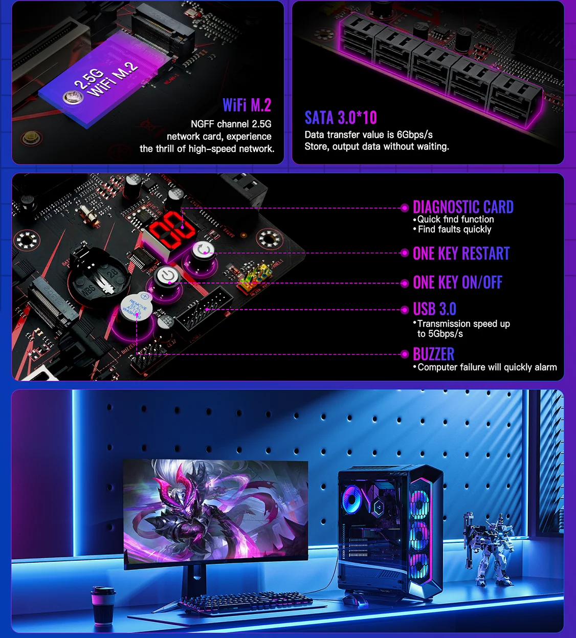 Compatible con SATA M.2 y M.2 NVME, WIFI M.2