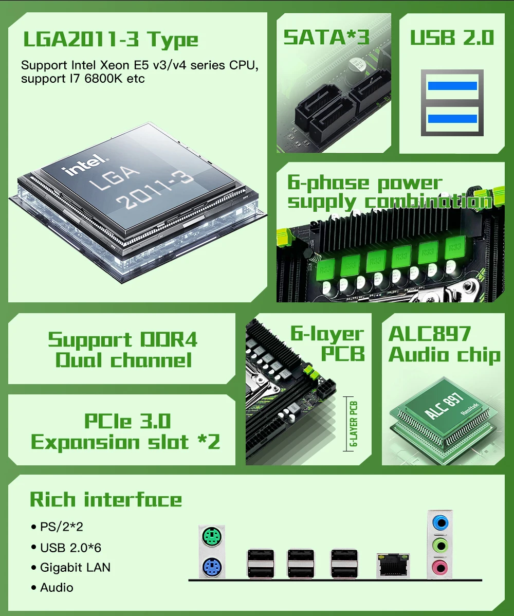 Comprar MACHINIST-placa base X99 PR9-H, LGA 2011-3, compatible con Xeon E5 2670 2690 V3 V4 serie CPU procesador DDR4 ECC RAM NVME M.2 SSD USB3.0