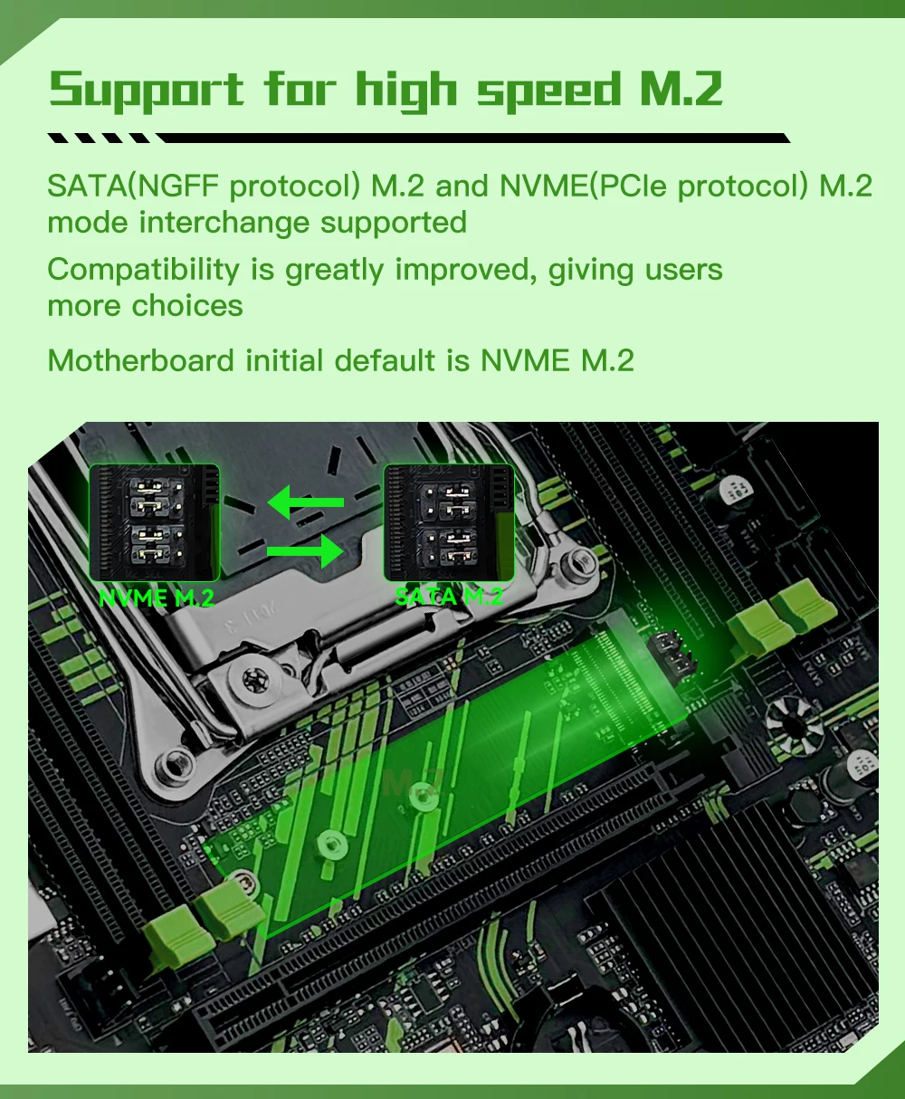 Discos duros aplicables: unidades de estado sólido SATA 2,5, discos duros mecánicos SATA 3,5, NVME M.2, SATA M.2 [Admite la conmutación de modo M.2, la configuración predeterminada de fábrica es NVME (PCIE), Y se puede cambiar a NGFF (SATA)]
