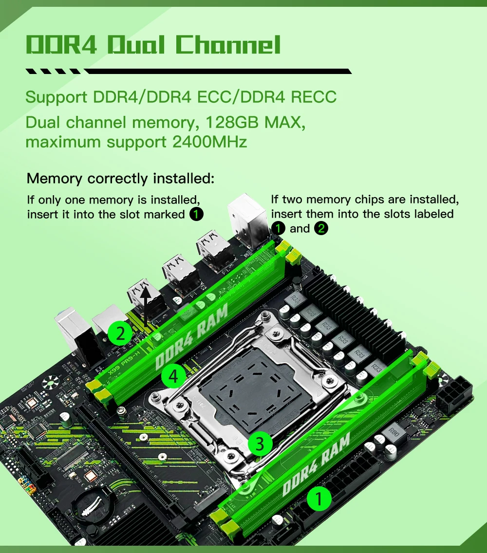 Ranura de memoria: 4 x 288pin DDR4 admite cuatro canales.