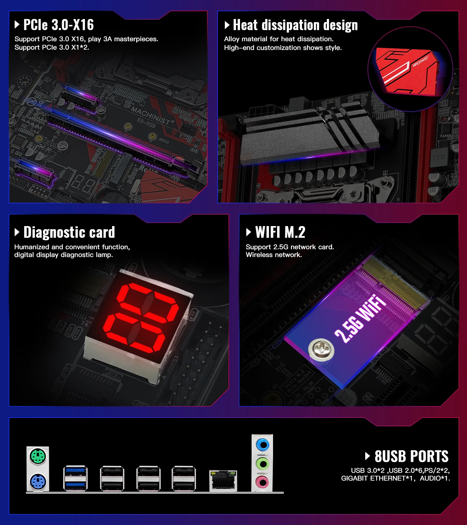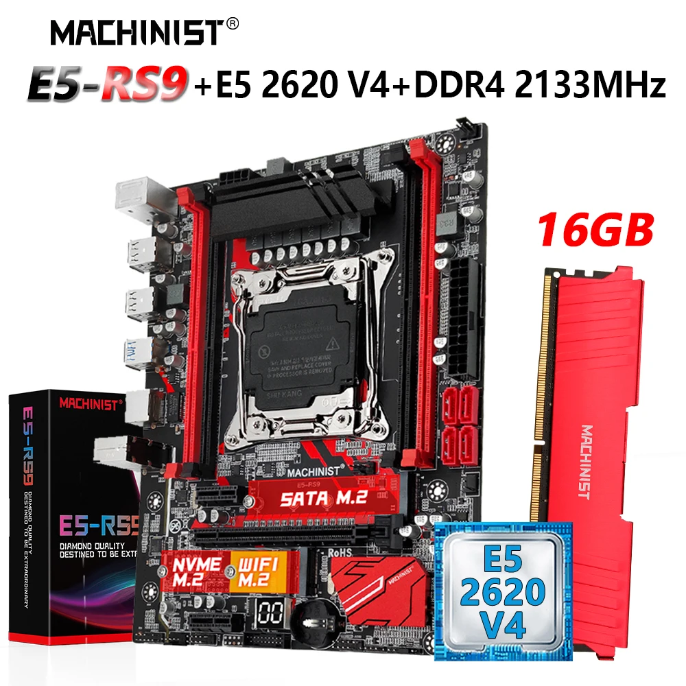 Comprar MACHINIST-placa base X99 RS9, Combo LGA 2011-3, procesador Xeon E5 2620 V4, CPU DDR4, memoria RAM de 16GB, NVME M.2 SATA, cuatro canales