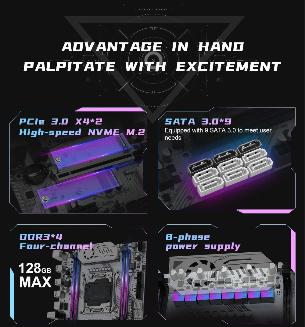 Memoria aplicable: DDR3 de escritorio, servidor DDR3 (ECC, RECC), admite 4 canales, soporte máximo de frecuencia 2133, capacidad de 128G (4*32), sin restricciones en el orden de la ranura de memoria