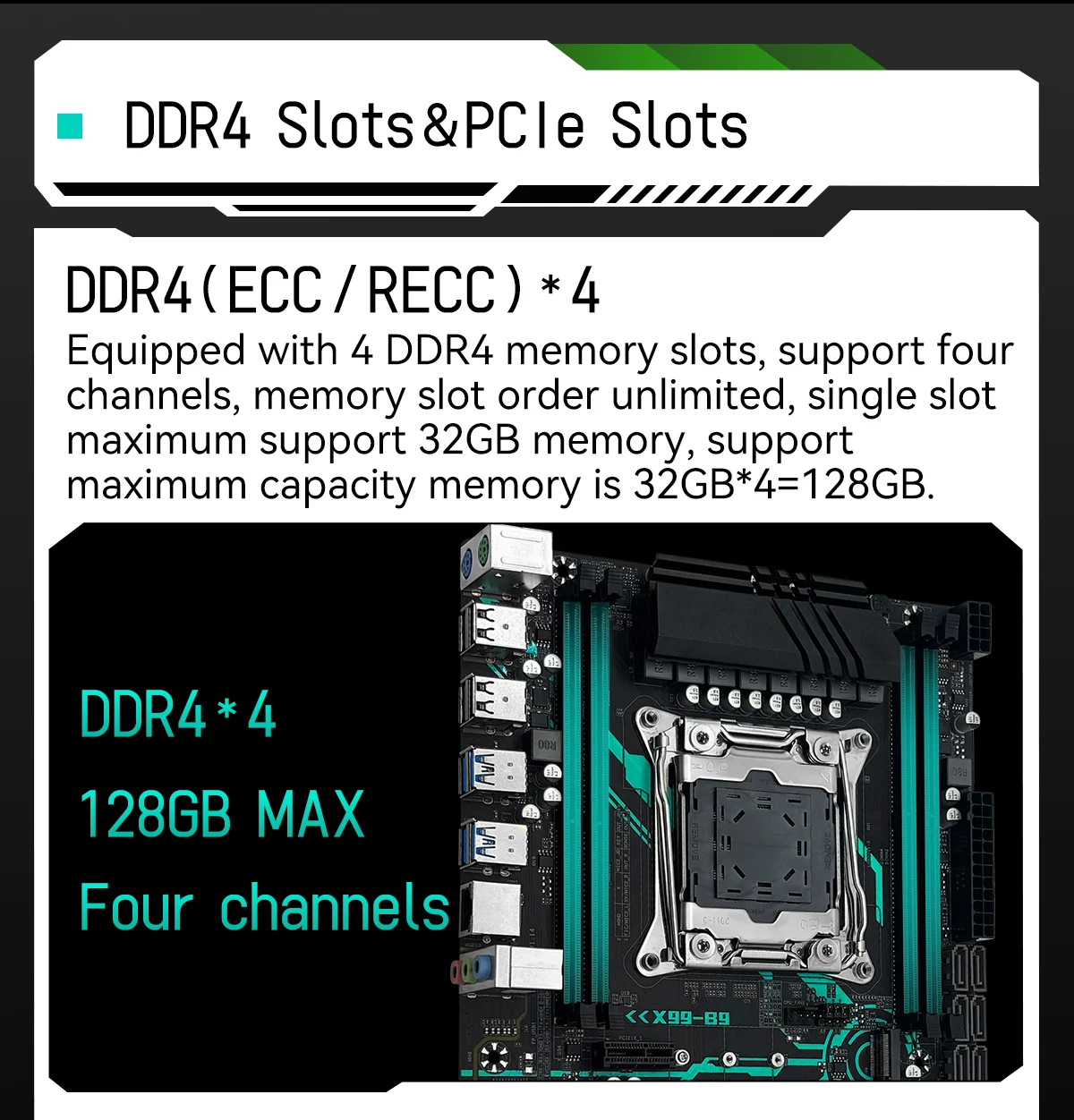 Tipo de memoria: DDR4 DIMM, compatible con DDR4, servidor DDR4 (ECC, RECC), cuatro canales, ranura única que admite hasta 32 GB de memoria, la capacidad máxima de memoria puede alcanzar 128 GB (32 GB * 4, la frecuencia máxima puede alcanzar 2400 MHz (esto depende de el procesador de CPU)