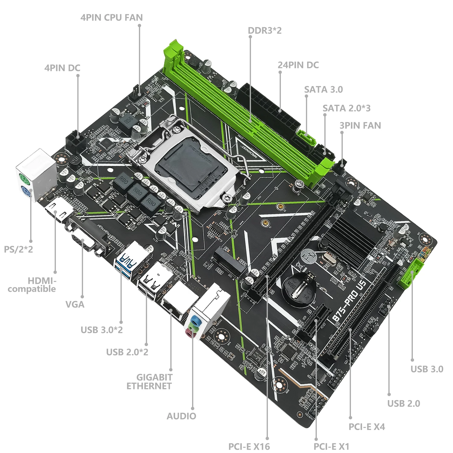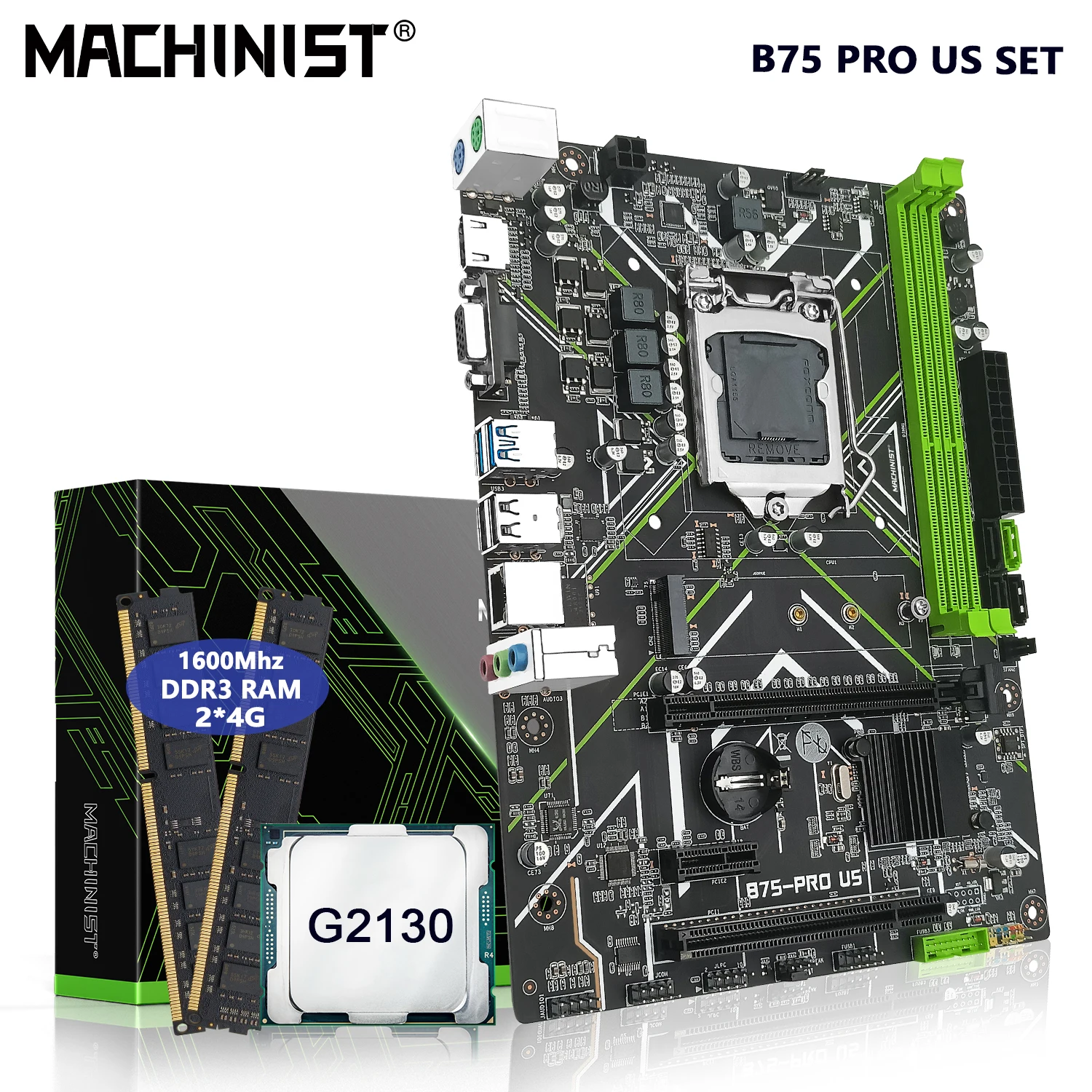 Comprar MACHINIT-Kit de placa base B75 LGA 1155, conjunto Inter Pentium G2130 CPU DDR3 RAM 2x4G, memoria de escritorio compatible con Ngff M.2 Sata 3,0 HDMI