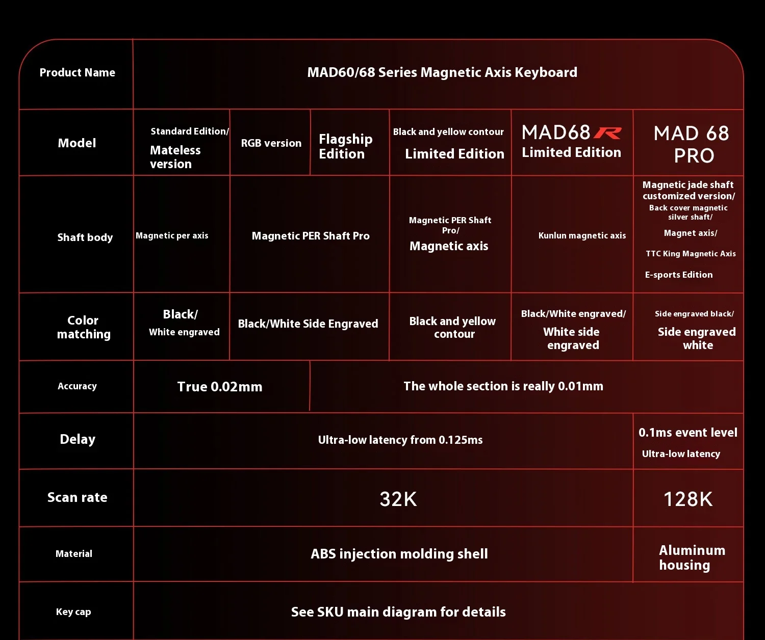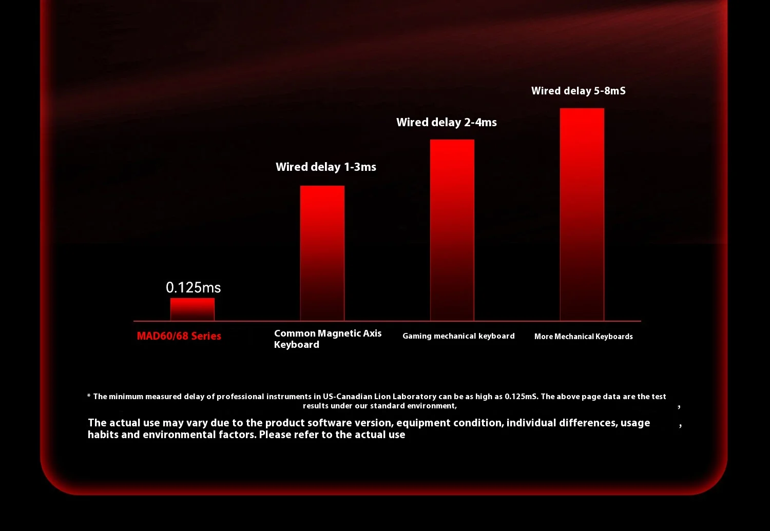 En la actualidad, los teclados de la serie Mad60/68 HE no pueden alcanzar la velocidad de almacenamiento de 8000 HZ. Madlions optimizará el firmware en actualizaciones posteriores para que el teclado alcance la velocidad de almacenamiento de 8000 HZ.