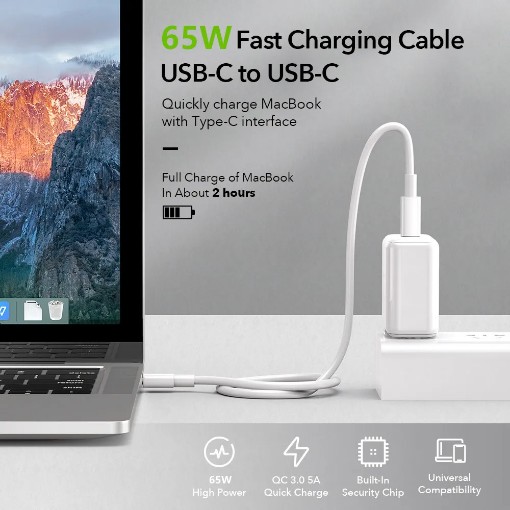 Maerknon Cable Tipo C a USB C para Samsung S20 Xiaomi PD 65W Cable de Carga Rápida para MacBook Pro IPad Cable de Cargador Tipo C