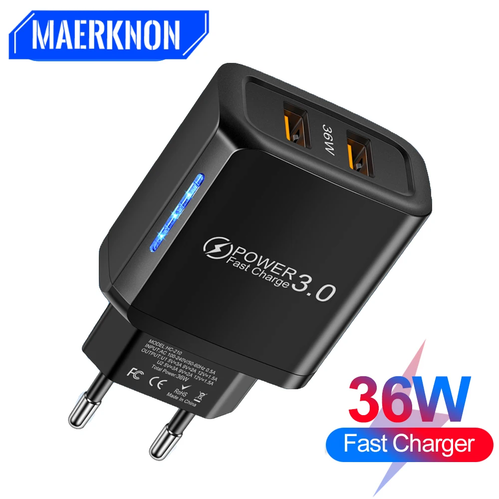 Comprar Maerknon-cargador USB de carga rápida QC 3,0 para teléfono móvil, adaptador de enchufe de viaje para iPhone 14, 13, Samsung, Xiaomi, UE y EE. UU., 36W