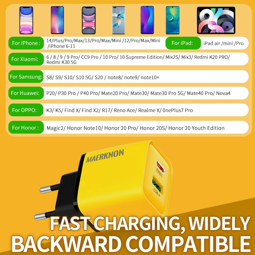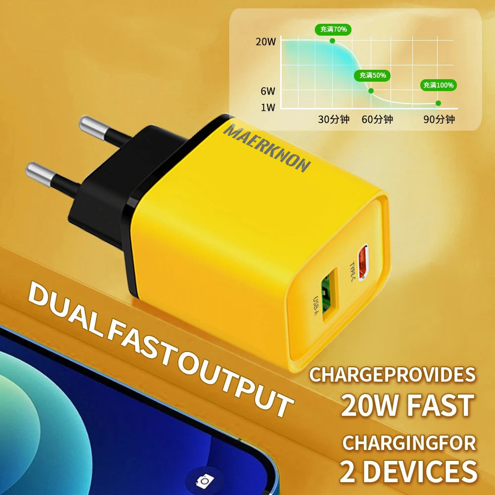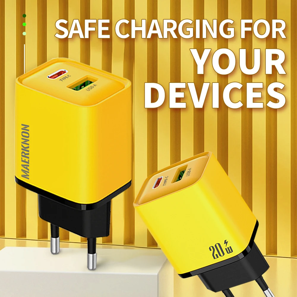 Comprar Maerknon-cargador USB tipo C de 20W, adaptador de carga rápida 4,0 3,0 PD, para iPhone 15, 14, 13, Xiaomi, Samsung