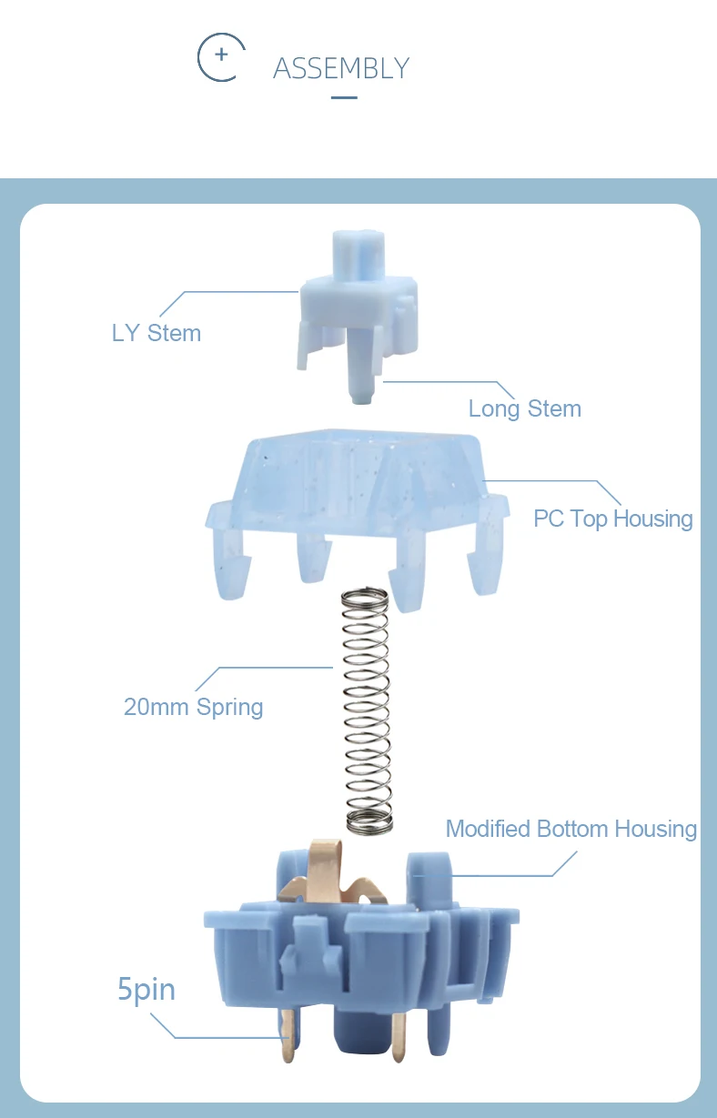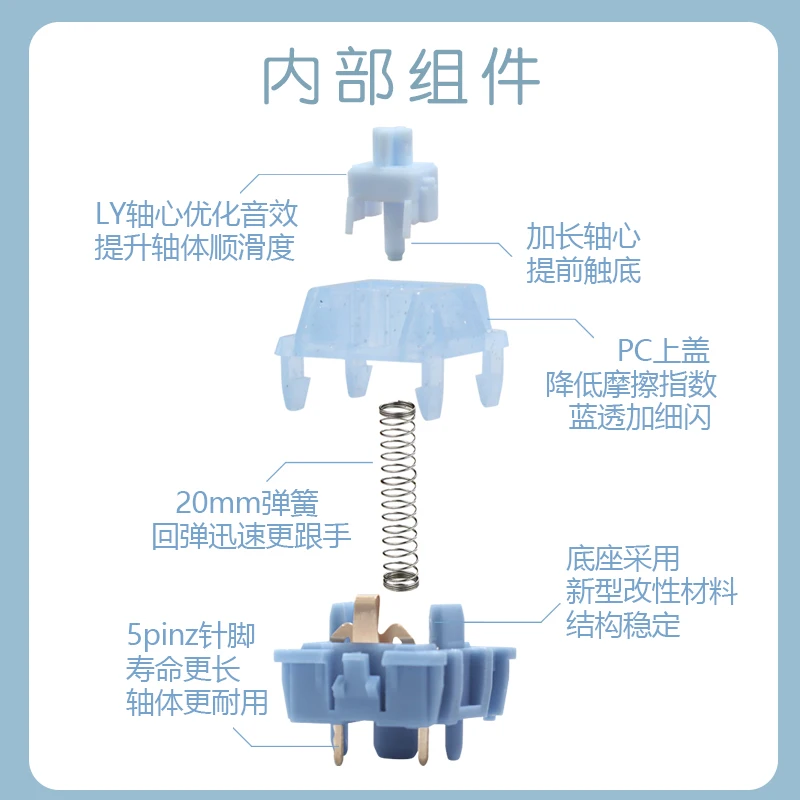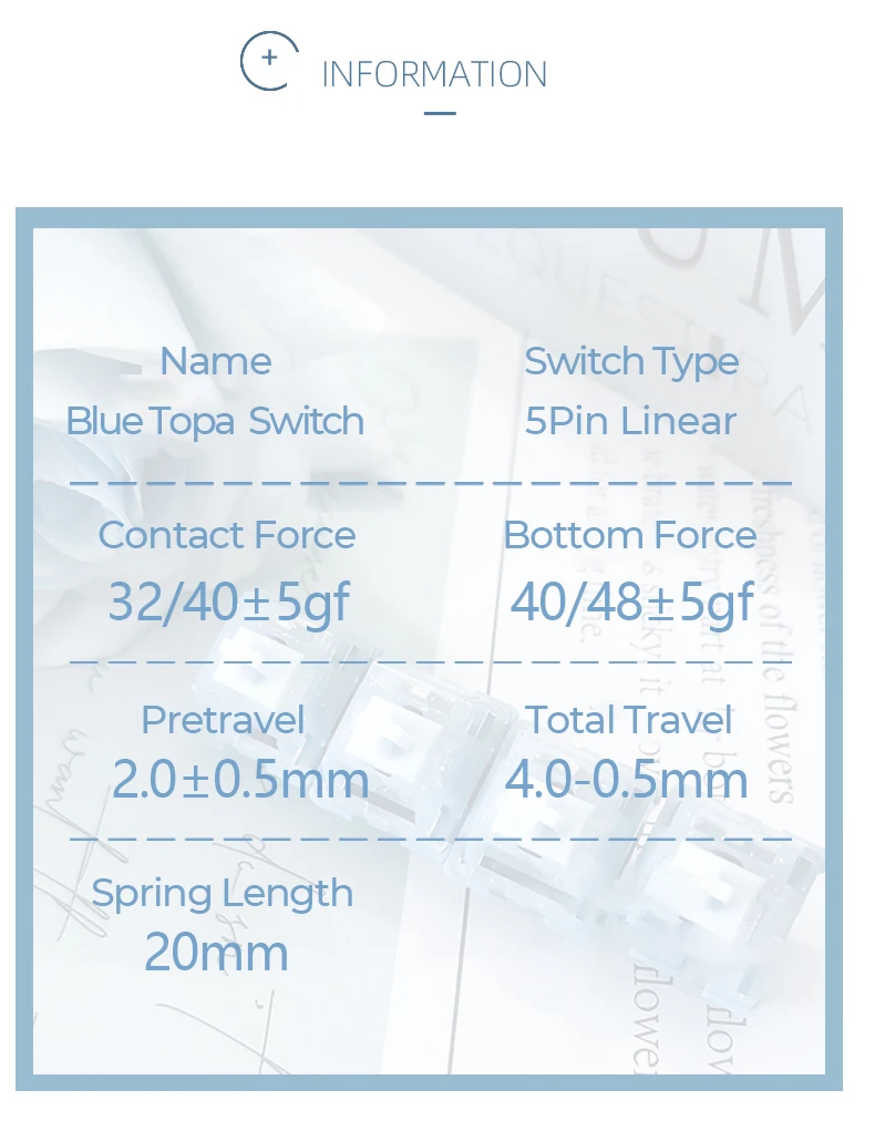 Comprar Mage Blue Topa Switch Linear Switch 32g 40g 48g para juegos, Teclado mecánico, Rosa Factory Lubed 50M Long Spring LY PC