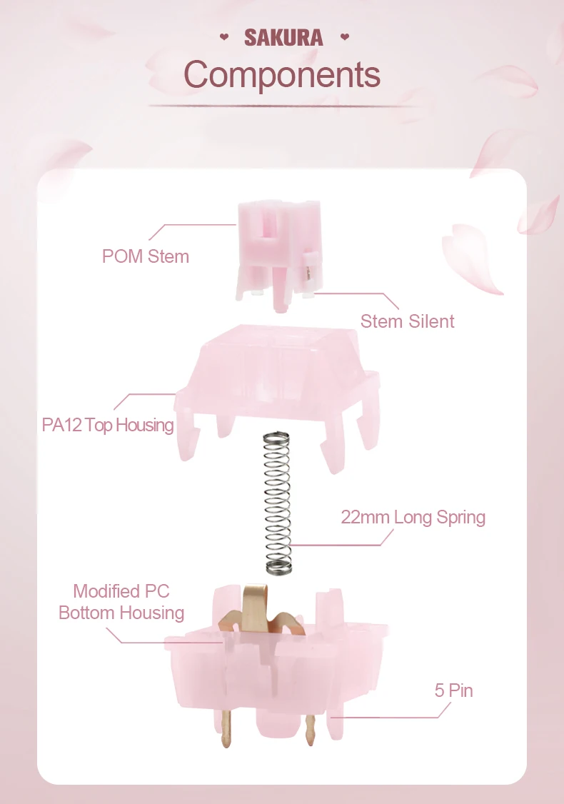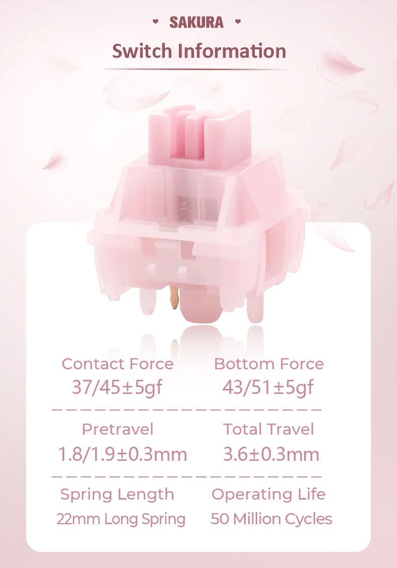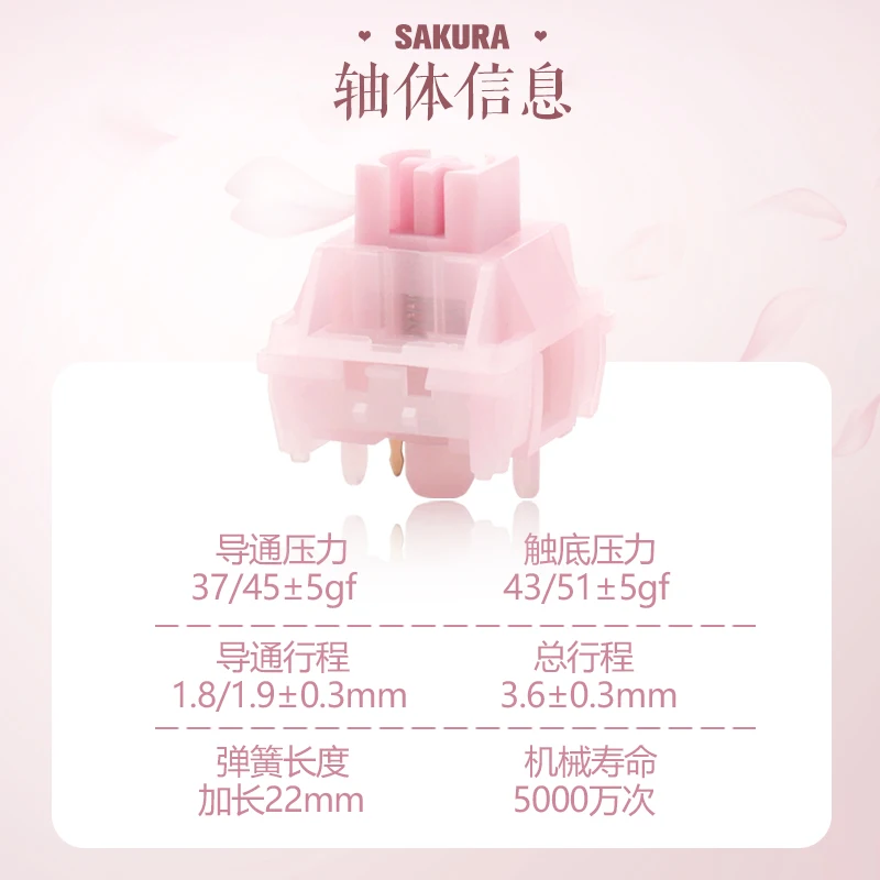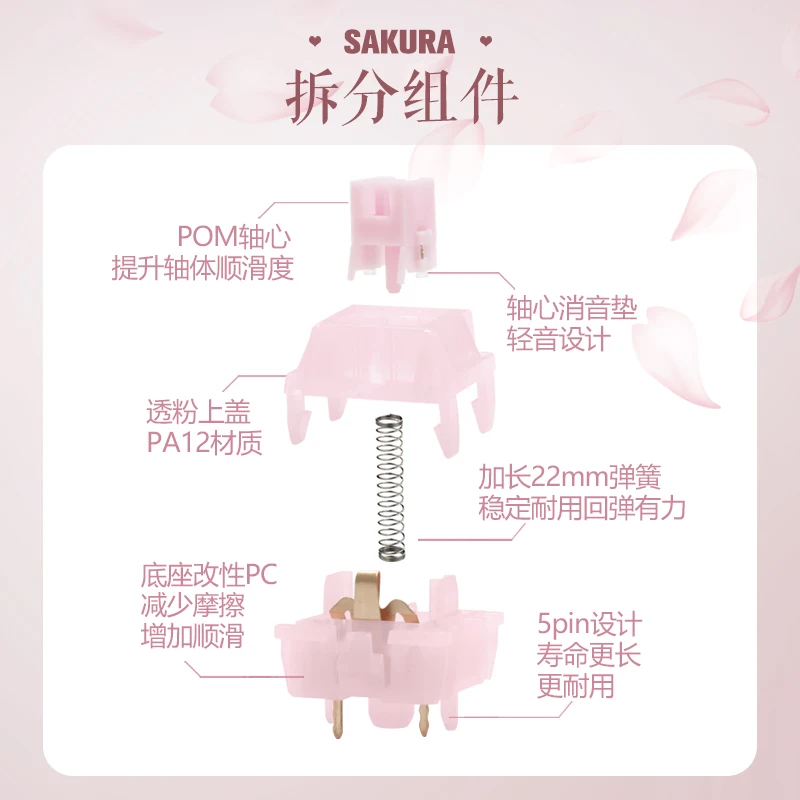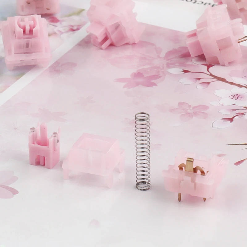 Comprar Mage Sakura interruptor lineal 45g 51g para teclado mecánico para juegos rosa lubricado de fábrica 50M resorte largo POM PA12 PC