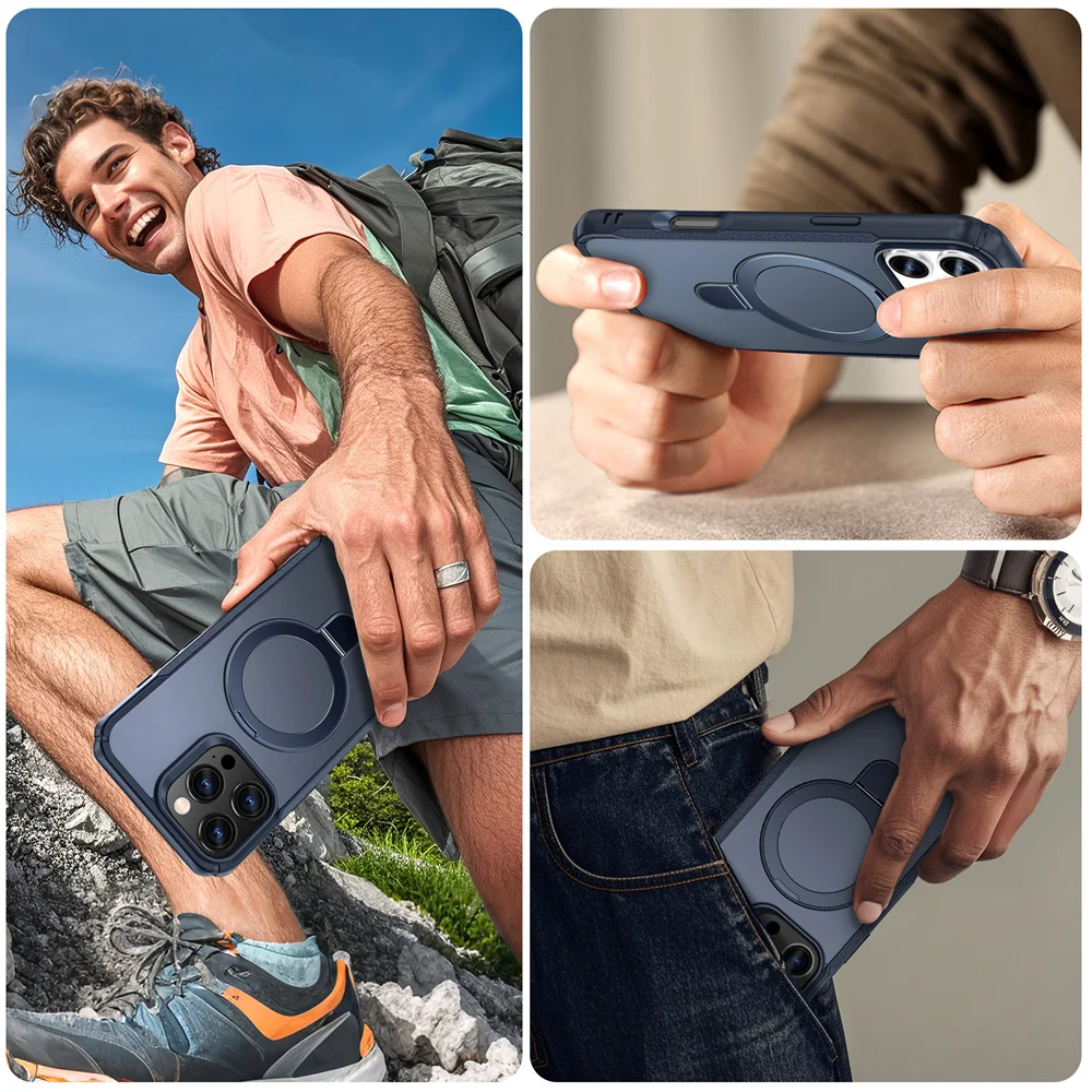 Para Magsafe carga inalámbrica plegable soporte magnético funda de teléfono para iPhone 15 16 17 Pro Max 16E 14 13 12 11 funda de parachoques antideslizante