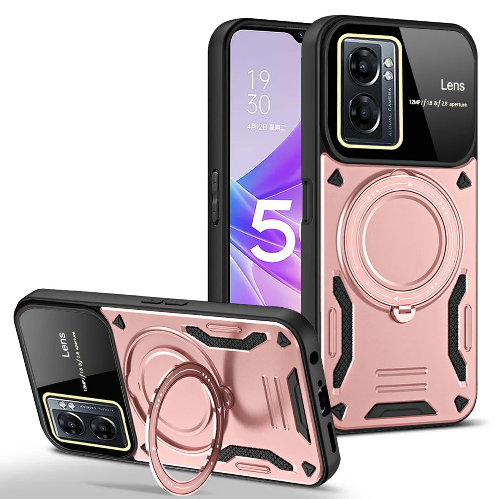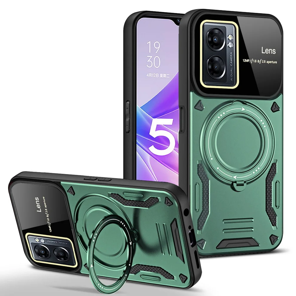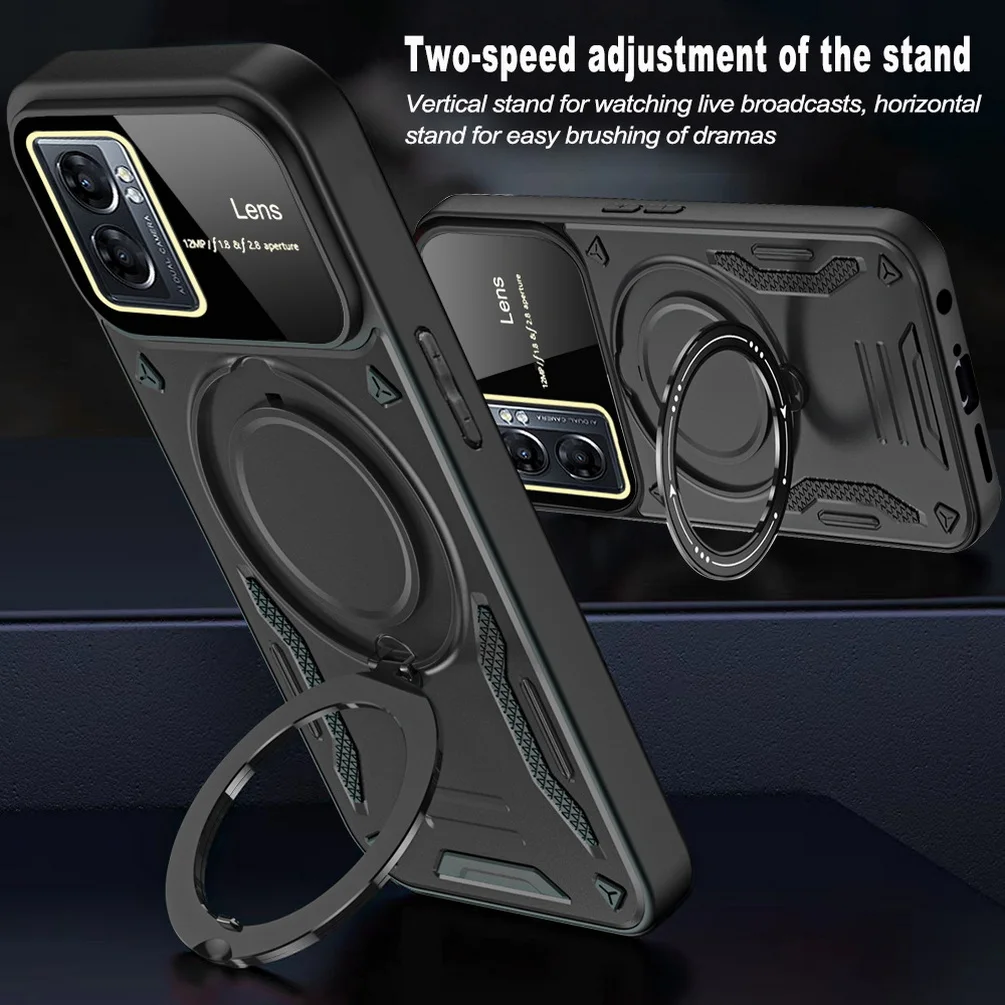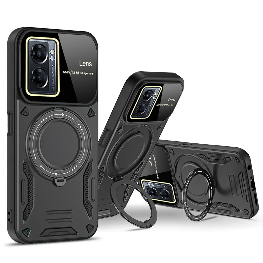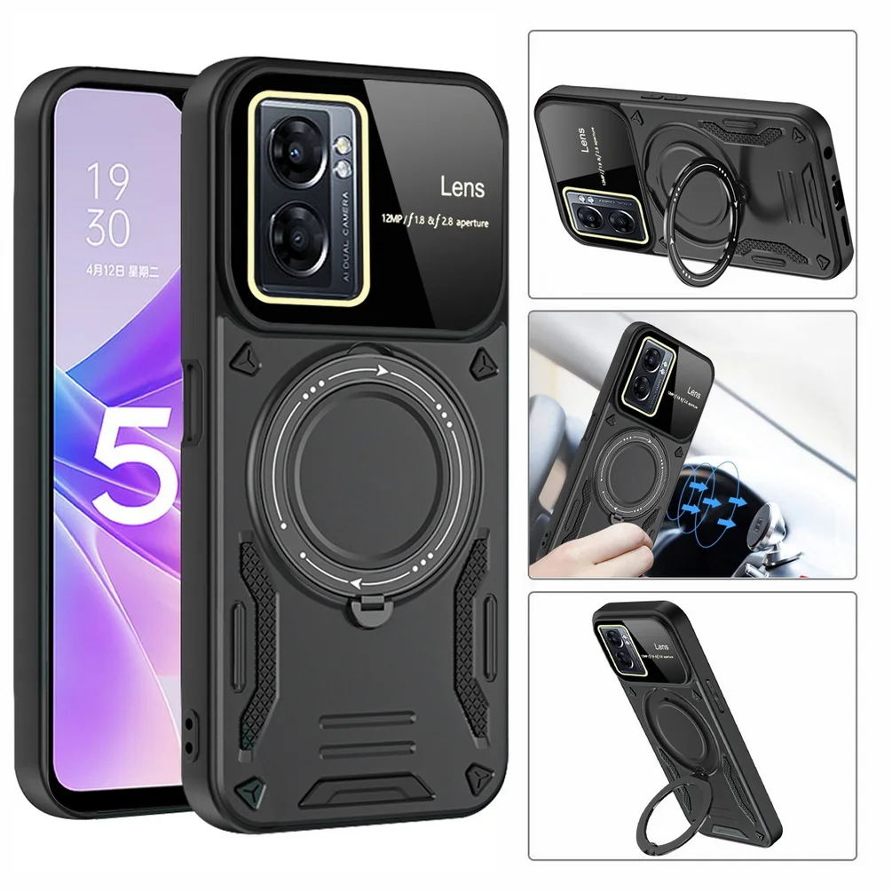 Comprar Magsafe-funda de adsorción magnética para OPPO A17, A57, A77, A77S, Realme, Narzo 50, cámara protectora, anillo giratorio de Metal, soporte para coche
