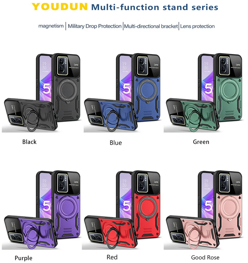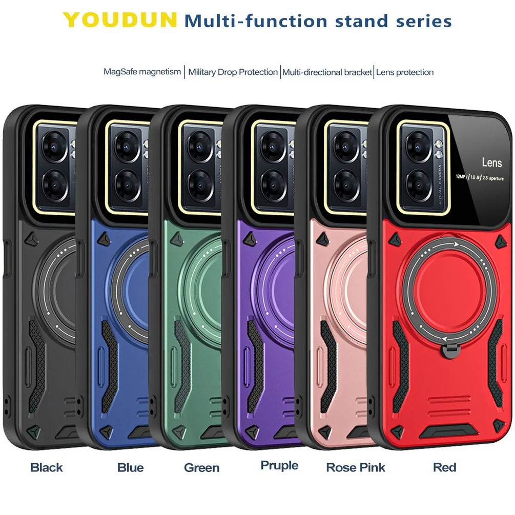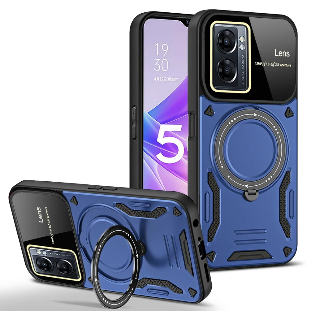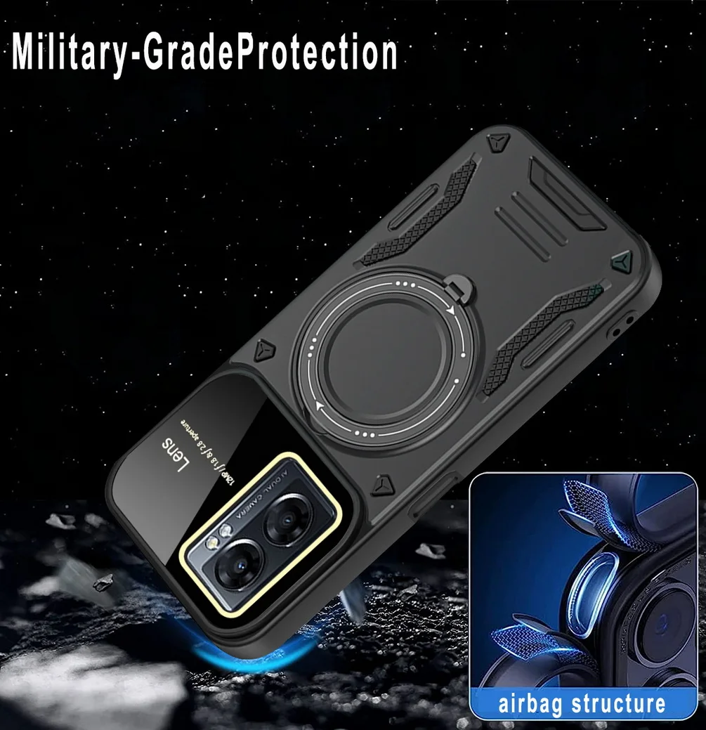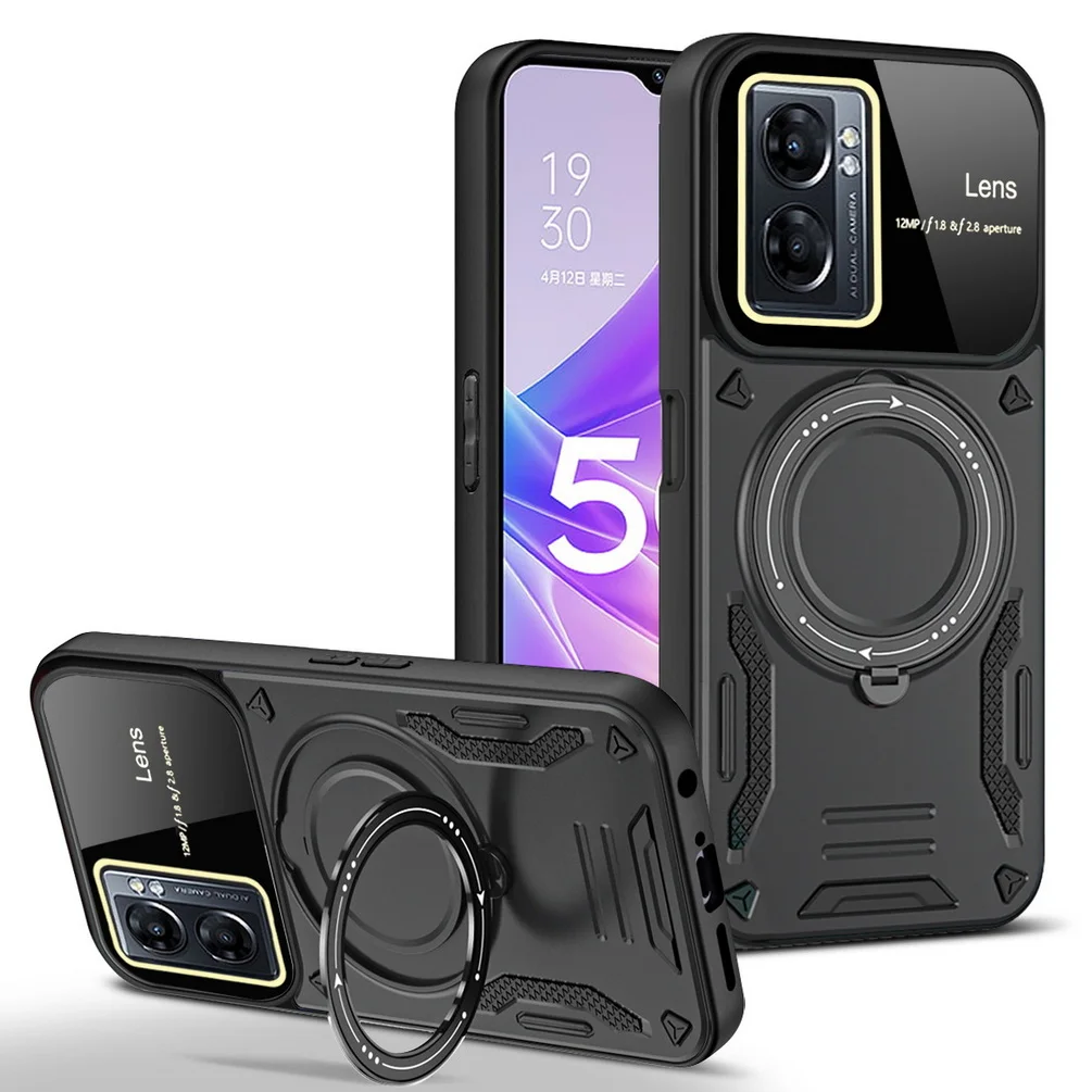 Comprar Magsafe-funda de adsorción magnética para OPPO A17, A57, A77, A77S, Realme, Narzo 50, cámara protectora, anillo giratorio de Metal, soporte para coche
